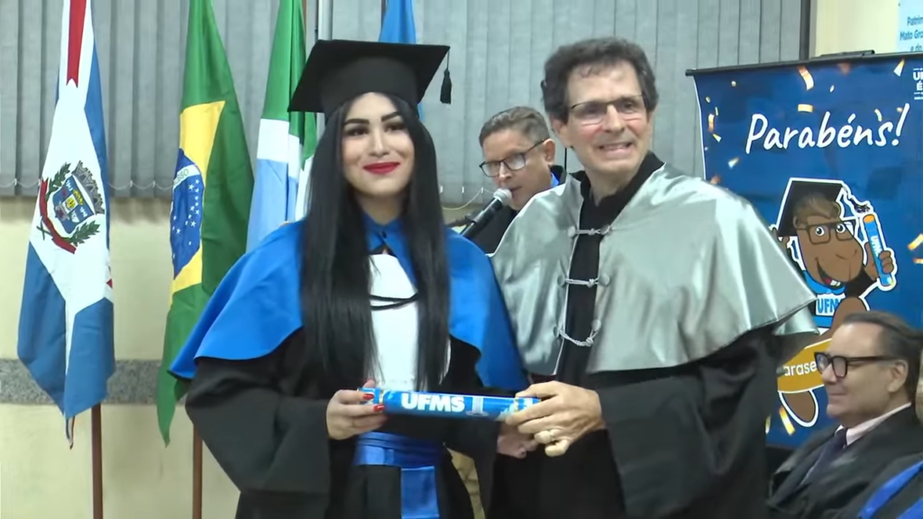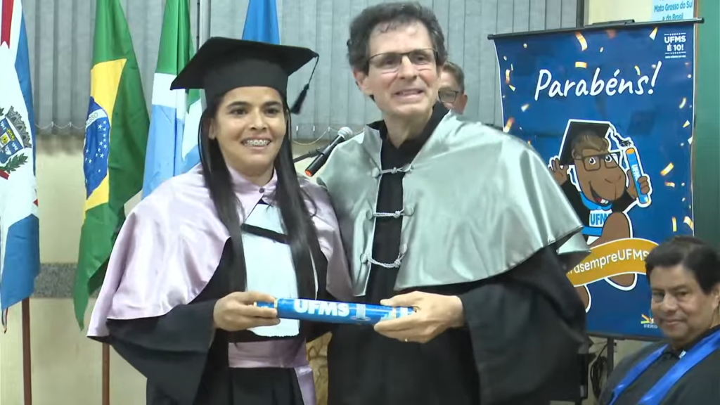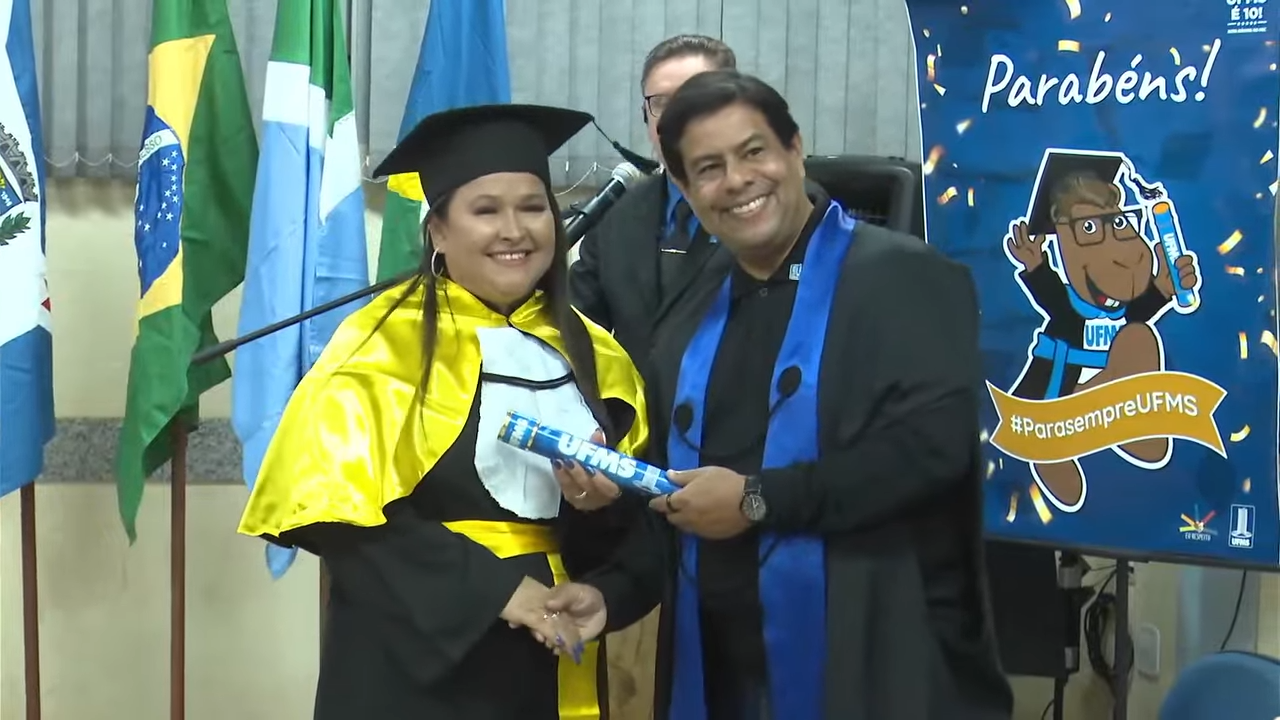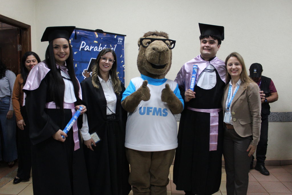 A pró-reitora de Cidadania e Sustentabilidade, Vivina Sol, destacou a alegria e o privilégio de participar de um momento tão especial para os concluintes. “Esta cerimônia reúne formandos de diferentes cursos, mas todos têm algo em comum: a dedicação, o esforço e o amor pela educação. Educar é um ato de amor e amar exige coragem. É um compromisso profundo, porque temos o poder de transformar vidas e compartilhar experiências que marcam para sempre. Sem vocês, estudantes, nós, professores da Universidade, não teríamos como exercer a docência”, disse. “Por onde vocês forem, levem a marca da nossa Universidade. Uma vez UFMS, sempre UFMS. Levem também o compromisso, os valores e o aprendizado que construíram aqui. Continuem aprendendo, pois o aprendizado é contínuo, aprendemos todos os dias. O conhecimento transforma vidas e tem o poder de transformar o mundo“, ressaltou.