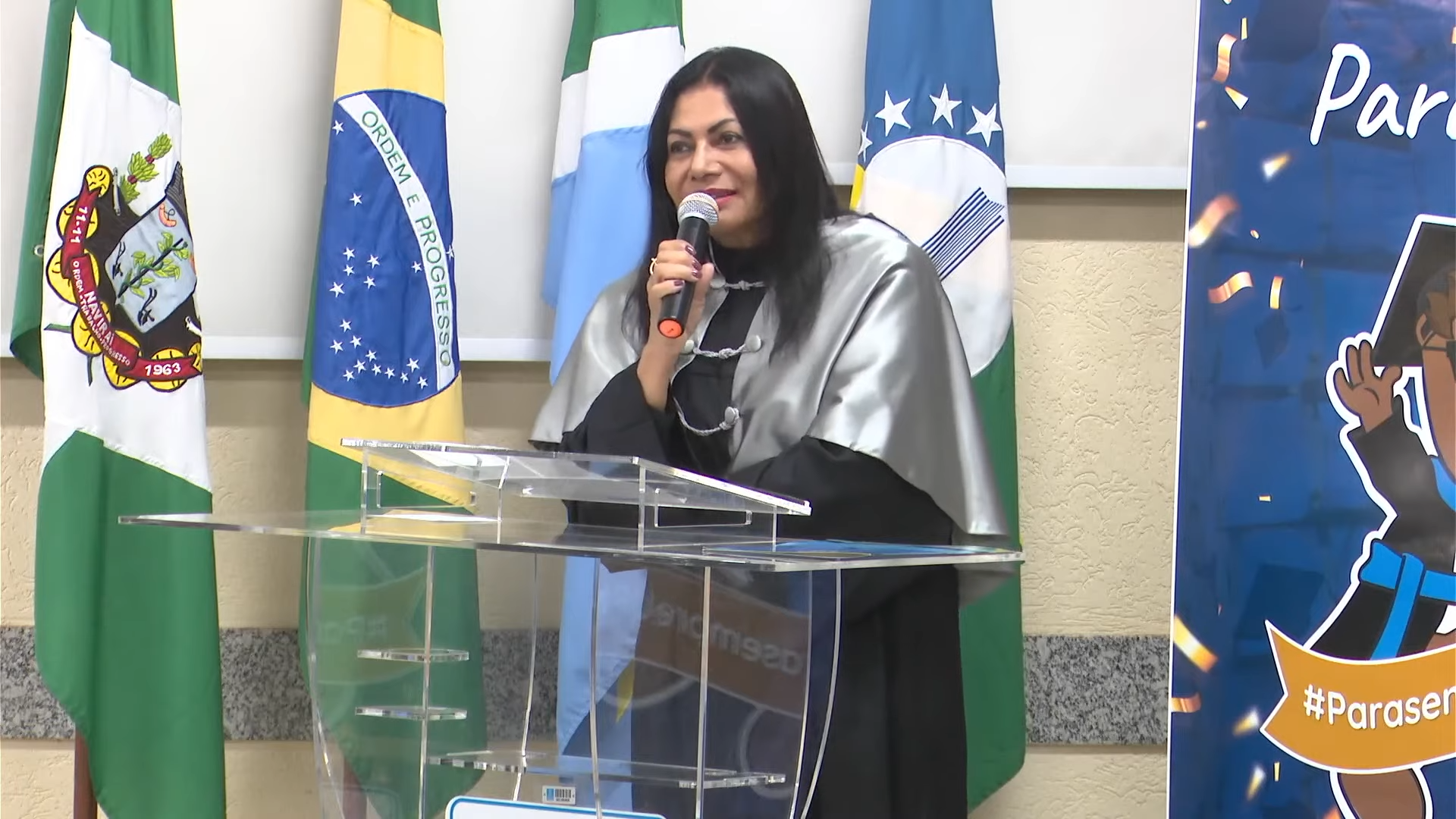A egressa Nádia Veron, titulada durante a pandemia de Covid-19, agradeceu a todos que fizeram parte de sua conquista. “Estar aqui hoje, presencialmente, recebendo o tão sonhado diploma, é a realização de um sonho. Quero agradecer, especialmente, a todos os professores, que enfrentaram muitas dificuldades naquele período, mas nunca deixaram de estar presentes. Sempre nos apoiaram e acreditaram em nossa formação, mesmo diante de tantos desafios. Hoje, só temos gratidão. O nosso muito obrigada a todos que fizeram parte dessa conquista”, disse.