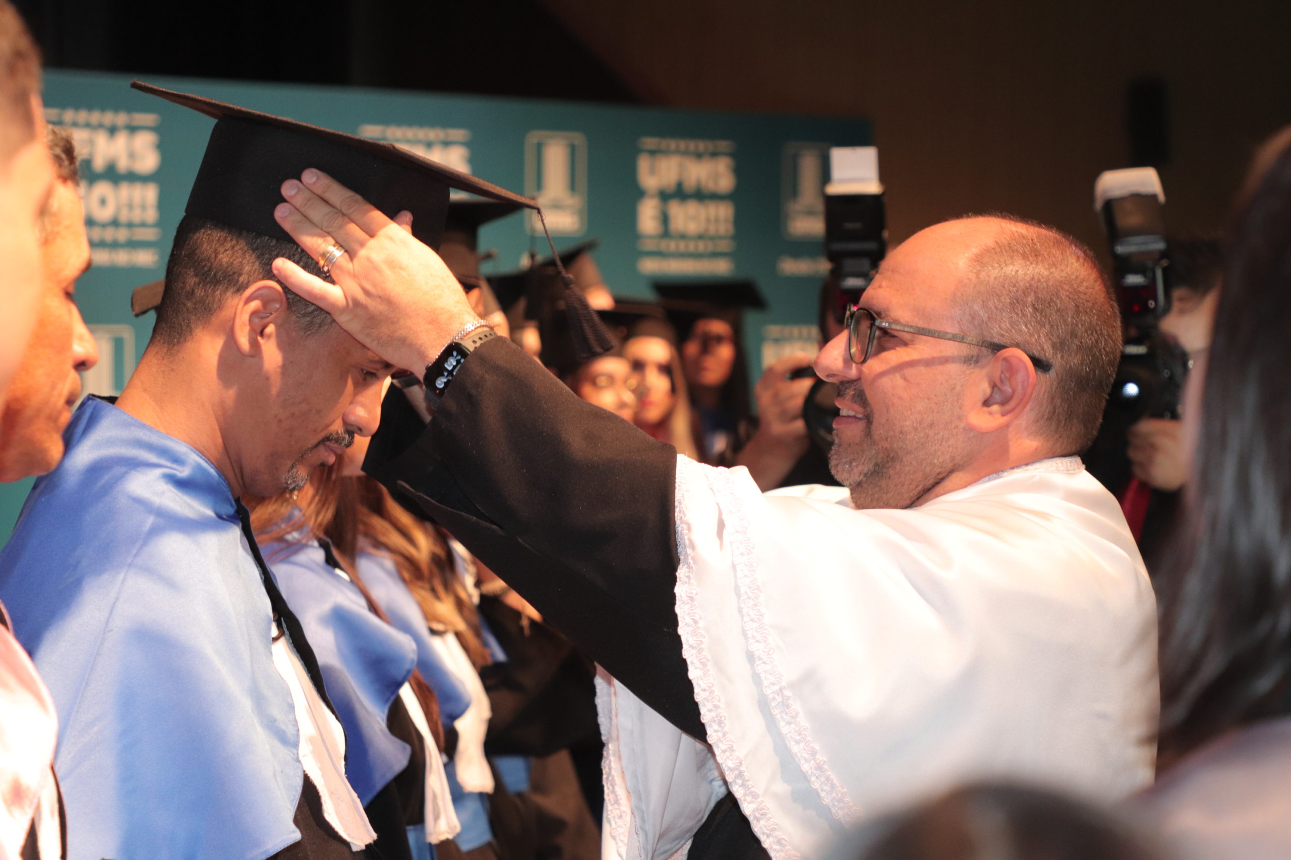 A noite de colação de grau é especial também para a família, que acompanhou a trajetória dos estudantes. José de Jesus Costa Menezes não pôde conter a emoção em formar o filho Guilherme, concluinte do curso de Educação Física. “Eu agradeço a UFMS e toda a sua equipe por nos acolher, principalmente o meu filho, que veio de outro estado, e conseguiu se graduar aqui. Tenho muita gratidão pelo dia de hoje!”.