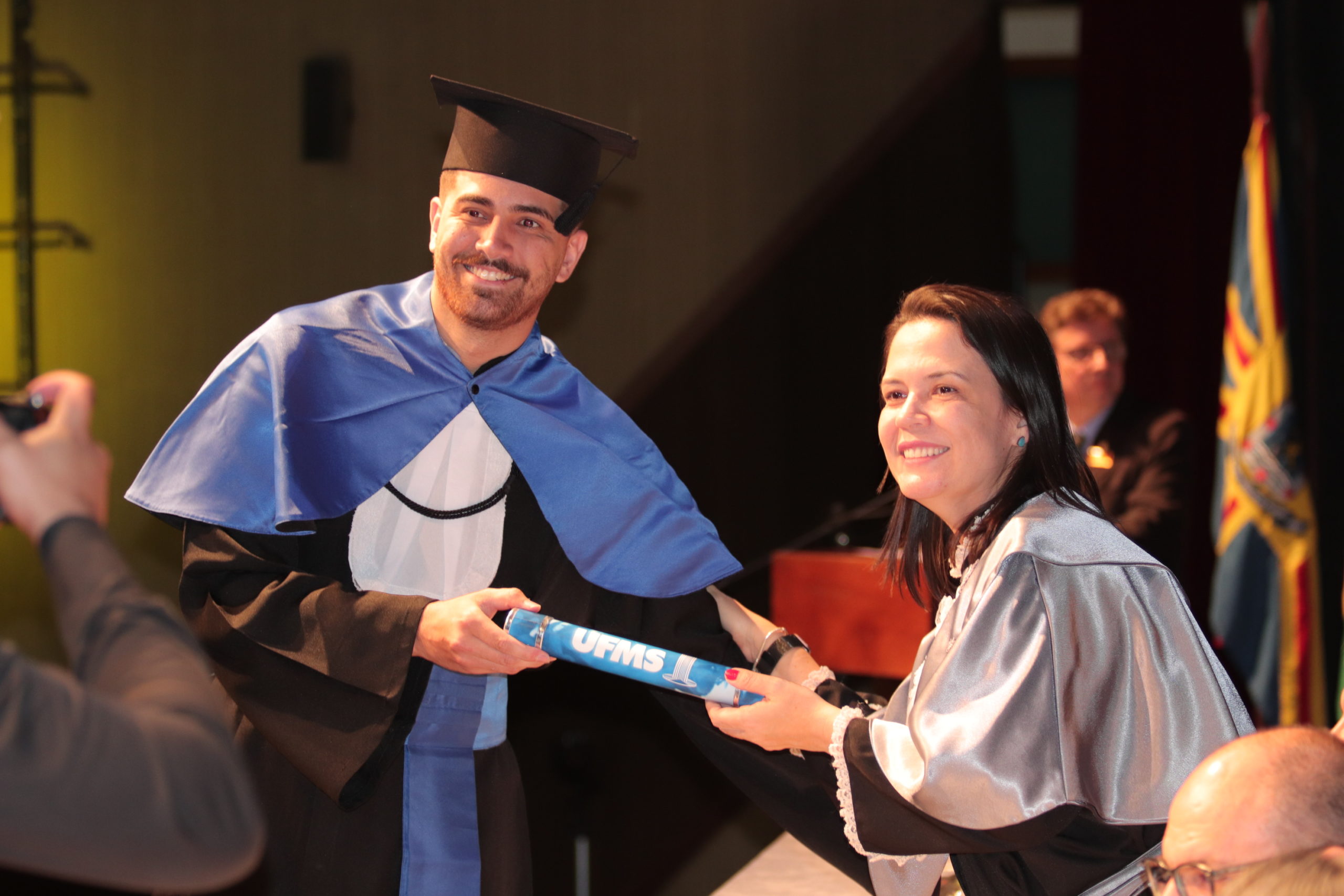 A formanda de Pedagogia Thais Nayana da Costa realizou o juramento durante a solenidade. Já o bacharel em Engenharia de Software André Diógenes Silva realizou o discurso em nome de todos os concluintes da noite. “A experiência na UFMS não se limitou a aulas. Fomos parte de uma comunidade diversas, onde aprendemos a respeitar a individualidade de cada um. Aqui, compartilhamos momentos de alegria, de estudo e de amizade”.