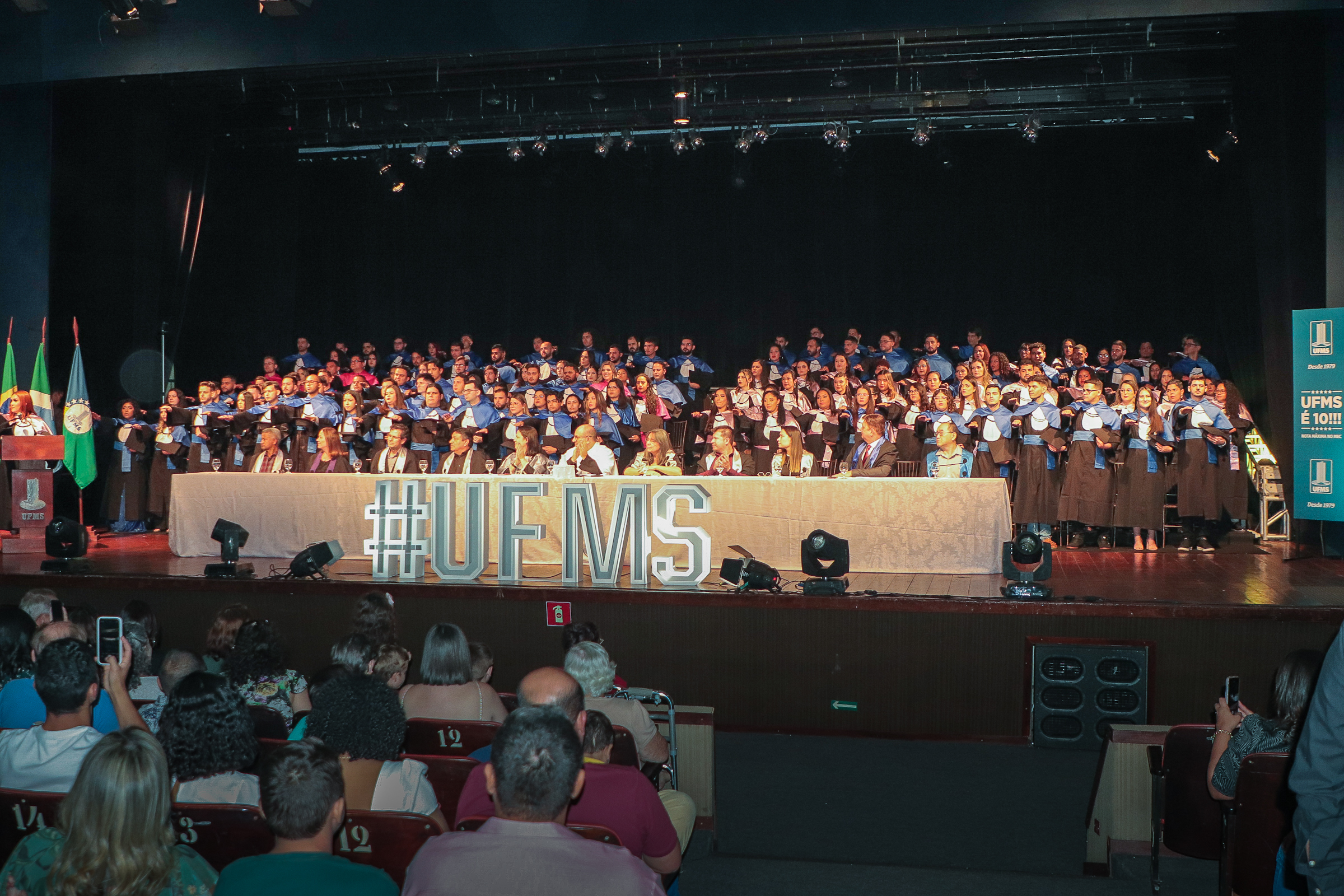 A segunda noite de colações de grau da Cidade Universitária reuniu 151 formandos nesta quarta-feira, 2, no Teatro Glauce Rocha. Os estudantes das Faculdades de Educação (Faed), de Computação (Facom) e da Escola de Administração e Negócios (Esan) celebraram o fim de um ciclo na solenidade, que foi transmitida ao vivo pelo canal da TV UFMS.