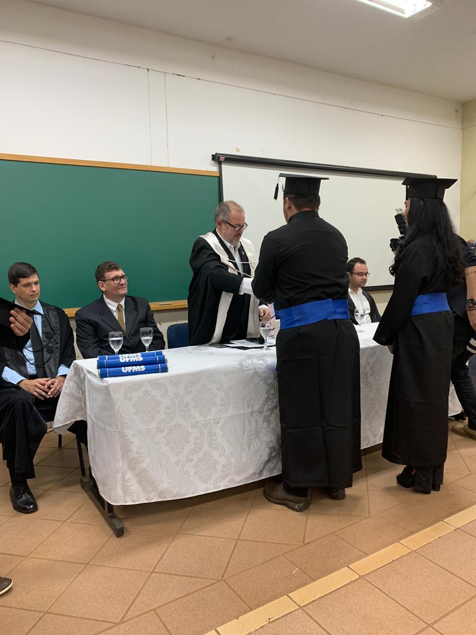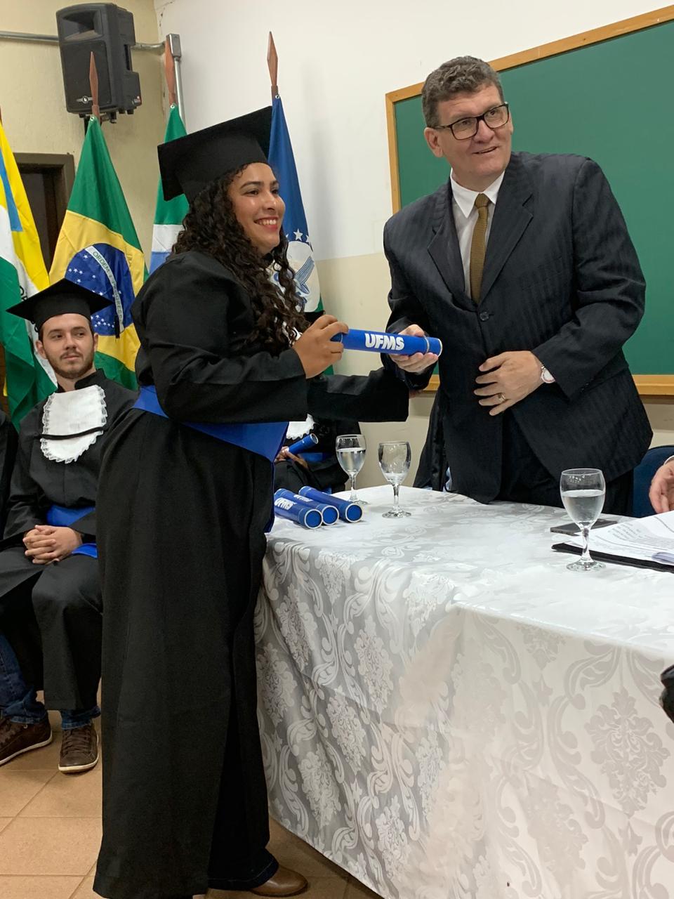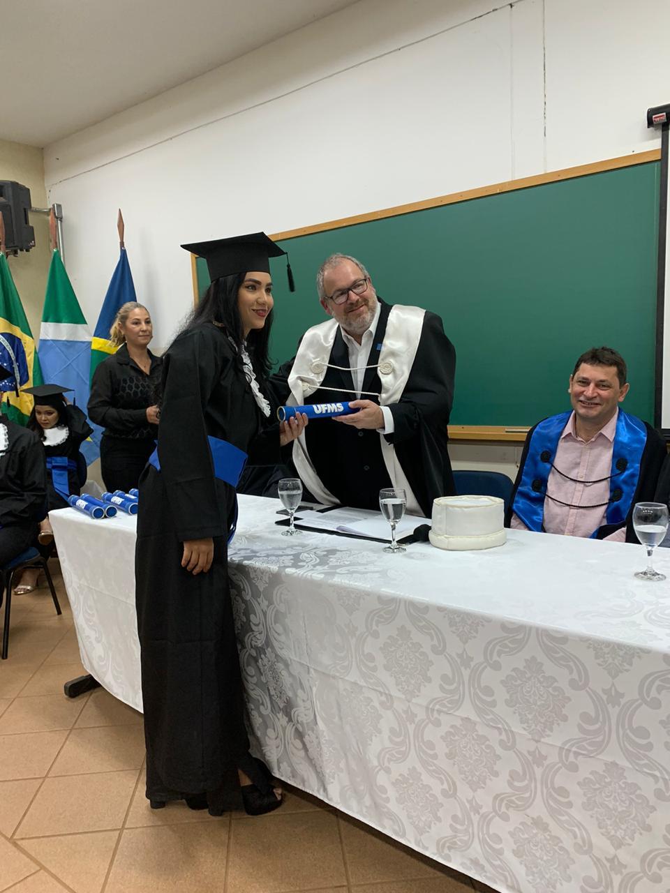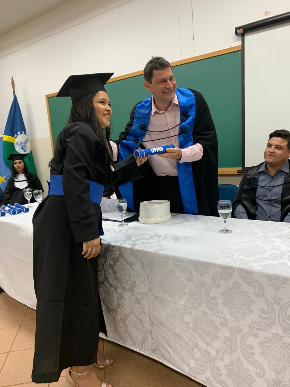 Sete graduandos colaram grau, sendo quatro de Agronomia e três de Engenharia Florestal. A oradora de turma, Dayanne Reis, relembrou em seu discurso momentos de alegria e dificuldade no decorrer do curso de Agronomia, emocionando a todos. “Ter sido estudante da UFMS significa muita alegria, muita felicidade e muito trabalho!”.
