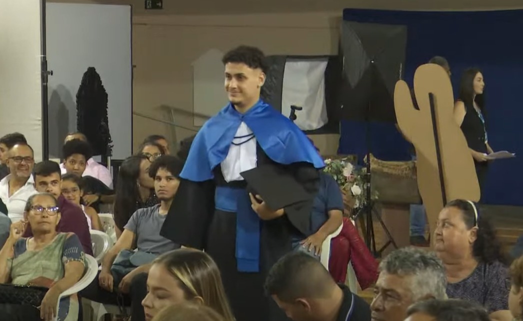 O diretor substituto do CPar, Dalton de Souza, fez uma analogia entre a educação e o processo de plantar e colher. “Querido formando e querida formanda, para Aristóteles, a educação tem raízes amargas, mas seus frutos são doces. E é por isso que este é um dos dias mais preciosos da sua vida. Um dia de doce colheita. As raízes amargas que os trouxeram até este momento de celebração podem ter deixado alguns para trás, mas não é o seu caso. O mesmo Aristóteles disse que: ‘Você nunca fará nada neste mundo sem coragem’. Para ele, a coragem é a melhor qualidade da mente, ao lado da honra. E a honra, segundo o dicionário Michaelis, é o princípio moral e ético que norteia alguém a procurar merecer e manter a consideração dos demais na sociedade. Você foi corajoso e honrado. Assim persistam. Agora, você é enviado ao mundo com uma linda marca denominada UFMS. Por isso, você é nosso grande embaixador. Contribuirá para transformar pessoas, organizações e a sociedade. Assim, sob a marca da UFMS, além de coragem e honra, ouso dizer que você precisará do mais belo fundamento: o amor. Como disse Paulo, o apóstolo: ‘Ainda que eu tenha o dom da profecia e saiba todos os mistérios e todo o conhecimento, e tenha uma fé capaz de mover montanhas, mas não tiver amor, nada serei. Ainda que eu dê aos pobres tudo o que possuo, entregue o meu corpo para ser queimado, mas não tiver amor, nada disso me valerá. O amor próprio, o amor ao próximo, o amor à profissão, o amor à vida’. Coragem, honra e amor. Que estes fundamentos sejam evidentes em sua vida. Peço a Deus que lhe abençoe, que sua graça se manifeste sobre você. Parabéns, muito sucesso, um grande abraço”.