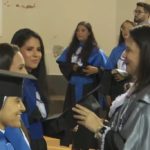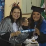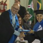 Na ocasião, a vice-reitora entregou três menções honrosas às formandas de cada curso. “Nada nos define. Não é o coeficiente de rendimento, correto, concordo, mas esse é um critério. Não é o que a gente tem, mas sim o que a gente é, e principalmente o que a gente pode fazer com aquilo que nós somos, que é o bem para todas as pessoas. Mas esta menção honrosa, aprovada pelo nosso Conselho Universitário, ela é baseada no coeficiente de rendimento acadêmico dos nossos estudantes”.