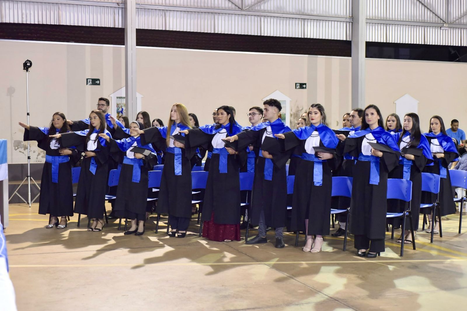 A Secretária de Administração da Prefeitura, Adailda Lopes, representando o prefeito Maycol Queiroz, reconheceu a importância e a alegria desse momento para todos os envolvidos, e reafirmou o compromisso do município com a instituição. “Sei que é motivo de muita alegria para cada um de vocês, para os pais e para os familiares. É uma grande honra vê-los aqui na frente. Vocês já tiveram a coragem suficiente para chegar até aqui, e certamente terão vários desafios pela frente, mas isso é inerente ao profissional comprometido. Tenho certeza de que vocês terão muito sucesso, pois a Universidade Federal tem demonstrado sua capacidade de entregar à sociedade profissionais altamente qualificados. Em nome do prefeito Maycol, também gostaria de reafirmar o compromisso do município com a Universidade Federal. Temos alguns projetos em andamento, como a Fazenda Escola e o Curso de Medicina Veterinária. Enquanto paranaibense e representante do poder executivo, gostaria de agradecer à Universidade Federal pela transformação que está sendo feita na nossa cidade. Como o professor já mencionou, sou uma egressa de uma Universidade Pública e sei o quanto isso é importante. Sou testemunha de que não teria condições de ter feito um curso superior na época se não fosse pela Universidade Estadual aqui em Paranaíba. Muito obrigada, e desejo muito sucesso a todos”, finalizou emocionada.
