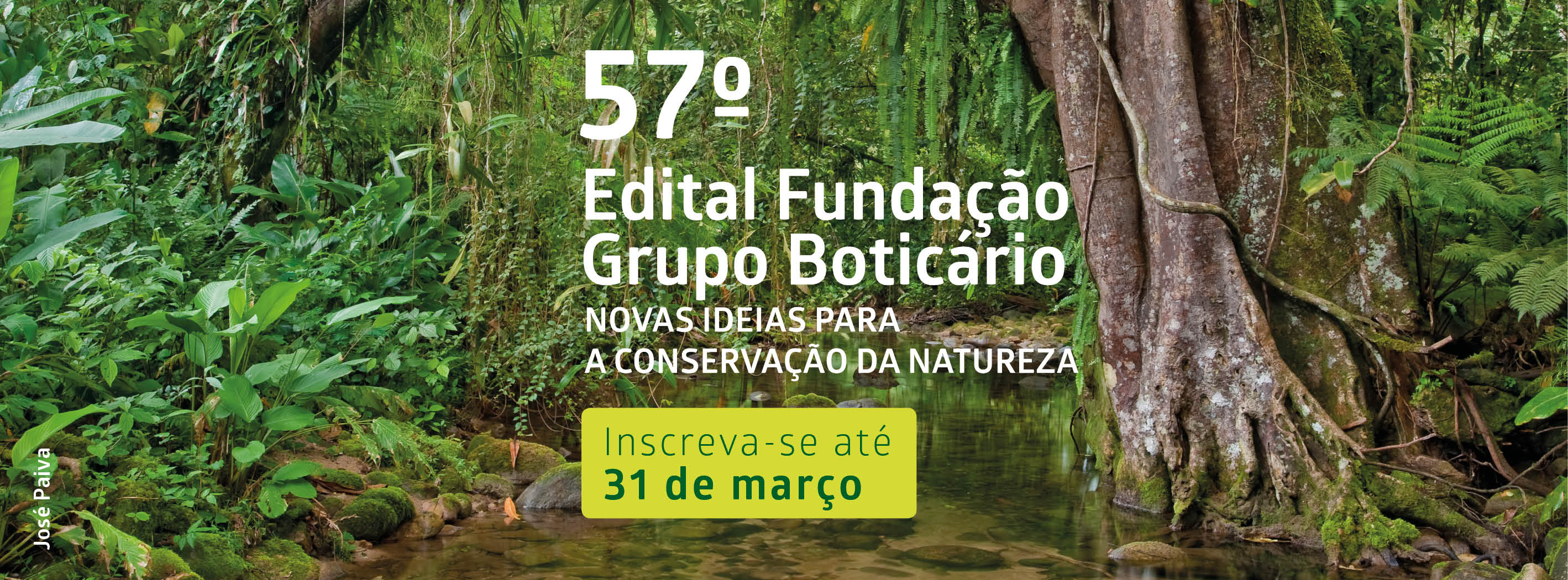 O 57º Edital da Fundação Grupo Boticário – Novas Ideias para a Conservação da Natureza está com inscrições abertas para que pesquisadores de todo o Brasil inscrevam iniciativas ligadas à conservação da biodiversidade até o dia 31 de março, pelo site da instituição.