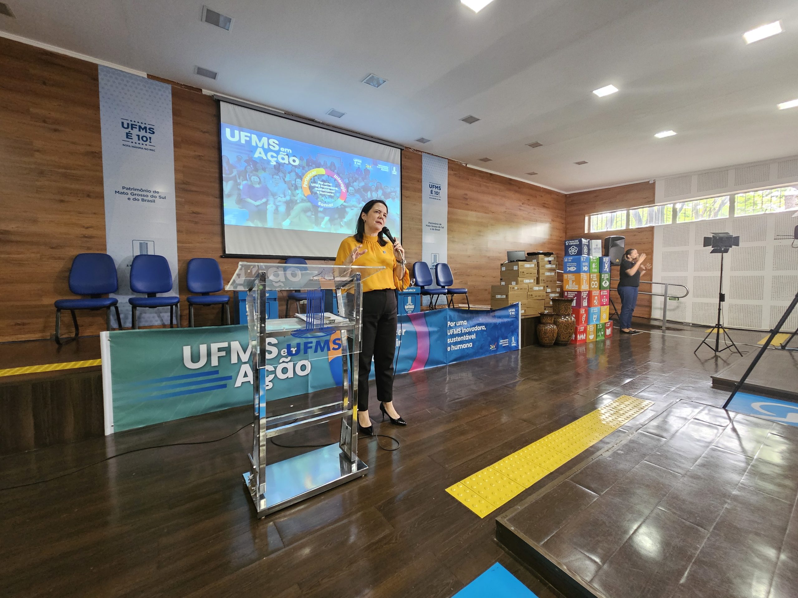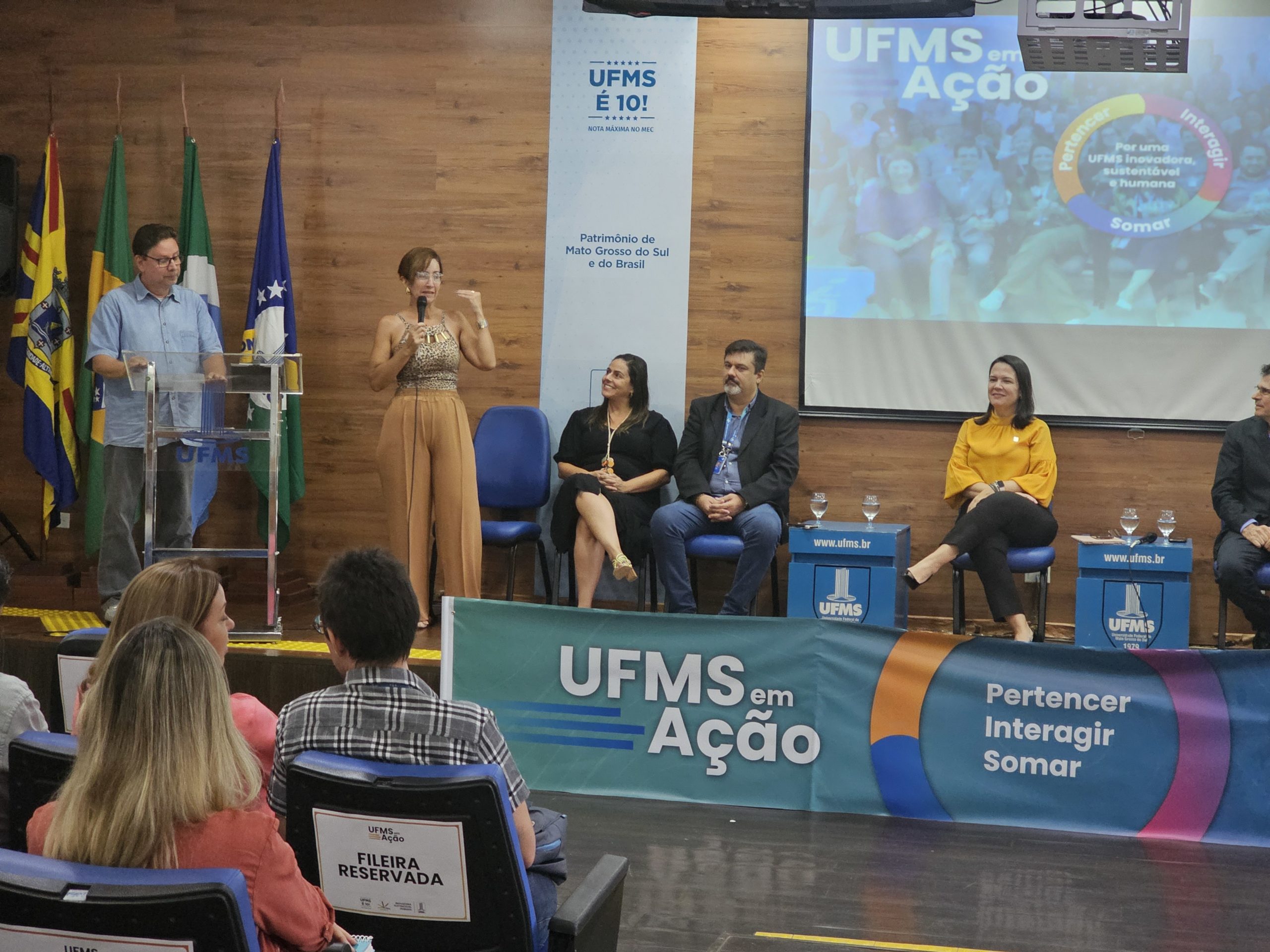 A diretora do CPaq também destacou o momento de integração. “Todos estamos aqui porque acreditamos que a ciência e a educação transformam o mundo. A UFMS se posicionando dessa forma, faz esse convite para que possamos transferir para nossa comunidade interna e externa, por meio de um ato corajoso que é se declarar uma Universidade inovadora, sustentável e humana. Só uma Universidade muito corajosa, feita por pessoas corajosas, declara que faz esse compromisso tão complexo, difícil, significativo”, enfatizou Ana Graziele.