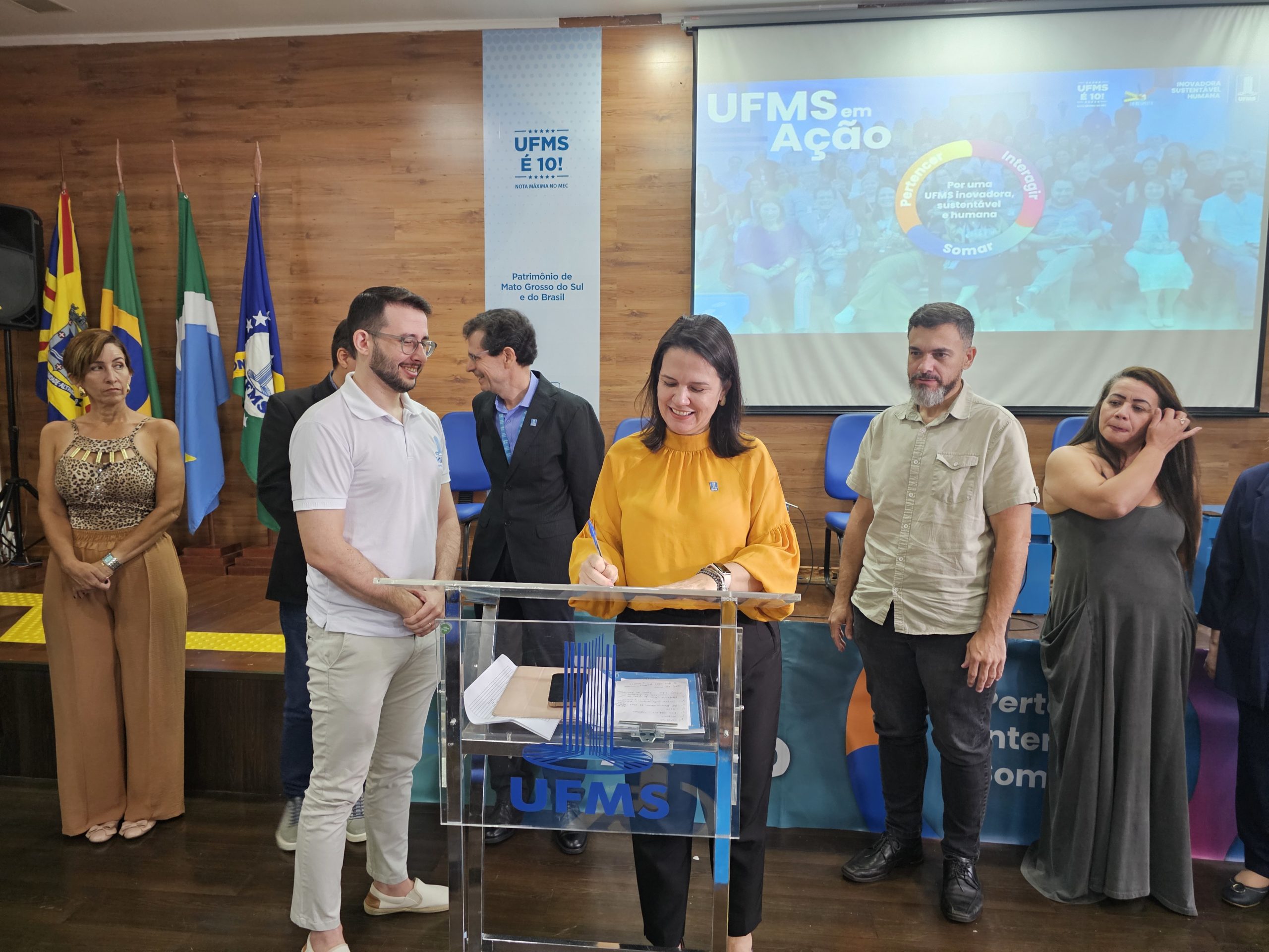 “Esse é um dia de festa. Todos nós fazemos parte dessa gestão e esse é um grande programa. Agradeço a todos vocês pelo seu ‘sim’ em ajudar para que a UFMS seja cada vez mais inovadora, sustentável, humana, pois é isso que esperamos da nossa Universidade”, complementou o vice-reitor.