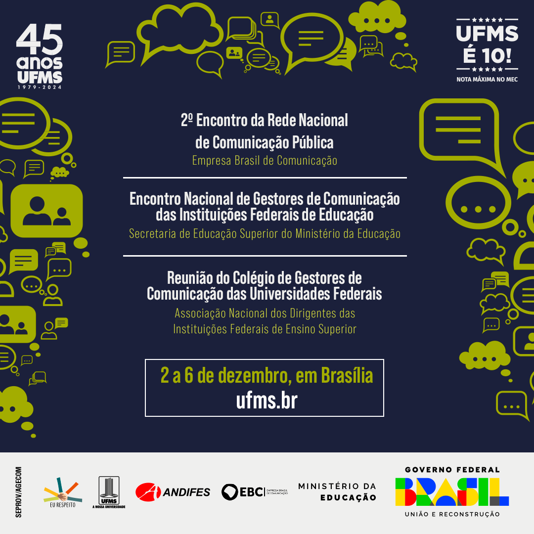 A iniciativa também visa promover a capacitação dos gestores que atuam nas instituições da Rede Federal de Educação Profissional, Científica e Tecnológica e das Universidades Federais, em consonância com os princípios da comunicação pública. Na programação constam mesas-redondas com a equipe da Assessoria de Comunicação do MEC, sobre o que é pauta na educação, gestão de comunicação em situações de crise e reputação institucional; palestras sobre diretrizes de comunicação do Governo Federal e impacto nas instituições federais de ensino superior, sobre ações e orientações no combate às fake news e educação midiática; conferência sobre comunicação pública como pilar estratégico das instituições; treinamento sobre criação de conteúdo e boas práticas no Tik Tok; além do lançamento do livro Comunicação pública nas Instituições Federais de Ensino Superior, organizado pelas universidades federais de Minas Gerais, de Alfenas e de Sergipe e debates entre os gestores.