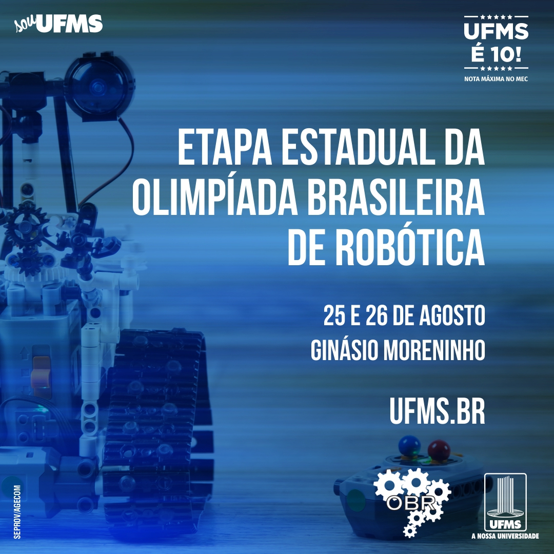 Começa nesta sexta-feira, 25, a etapa regional da modalidade prática da Olimpíada Brasileira de Robótica (OBR) 2023, no Ginásio Moreninho, na Cidade Universitária. Cerca de cem equipes com alunos do Ensino Básico das redes pública e privada de Mato Grosso do Sul participam da competição. A entrada é gratuita e aberta para o público em geral.