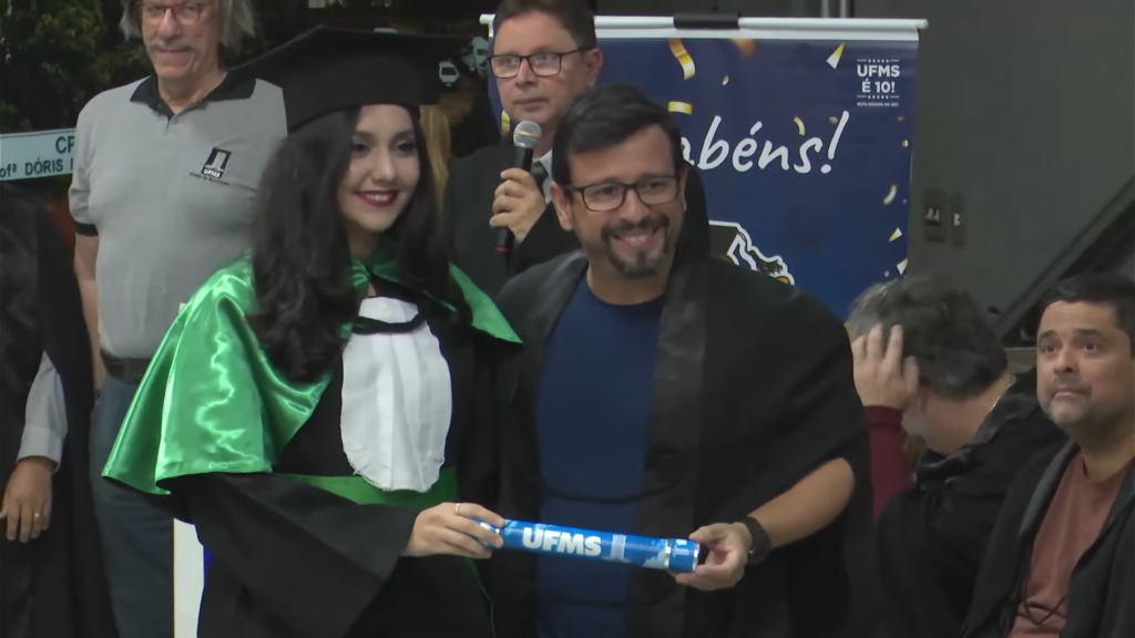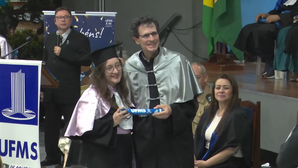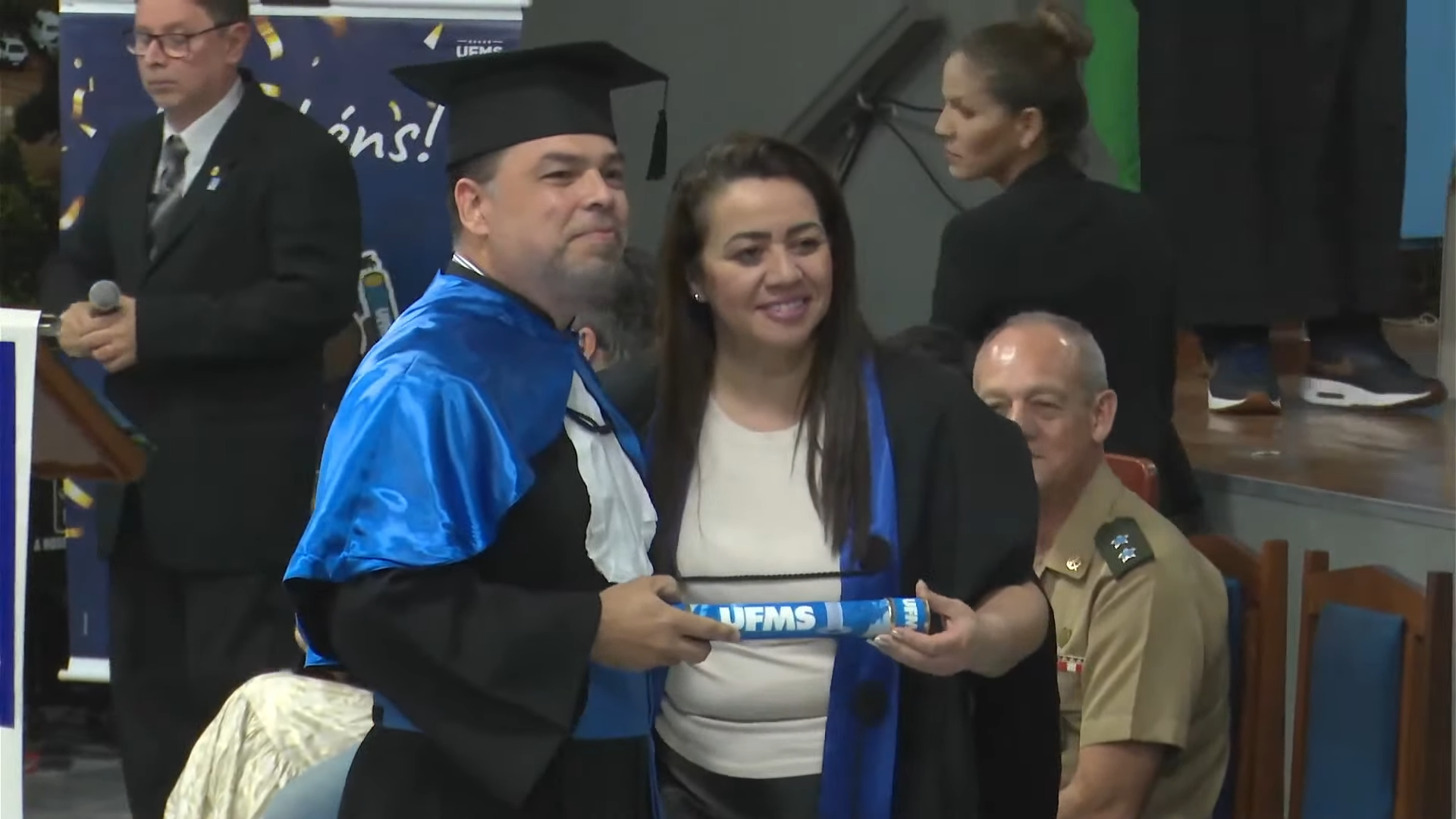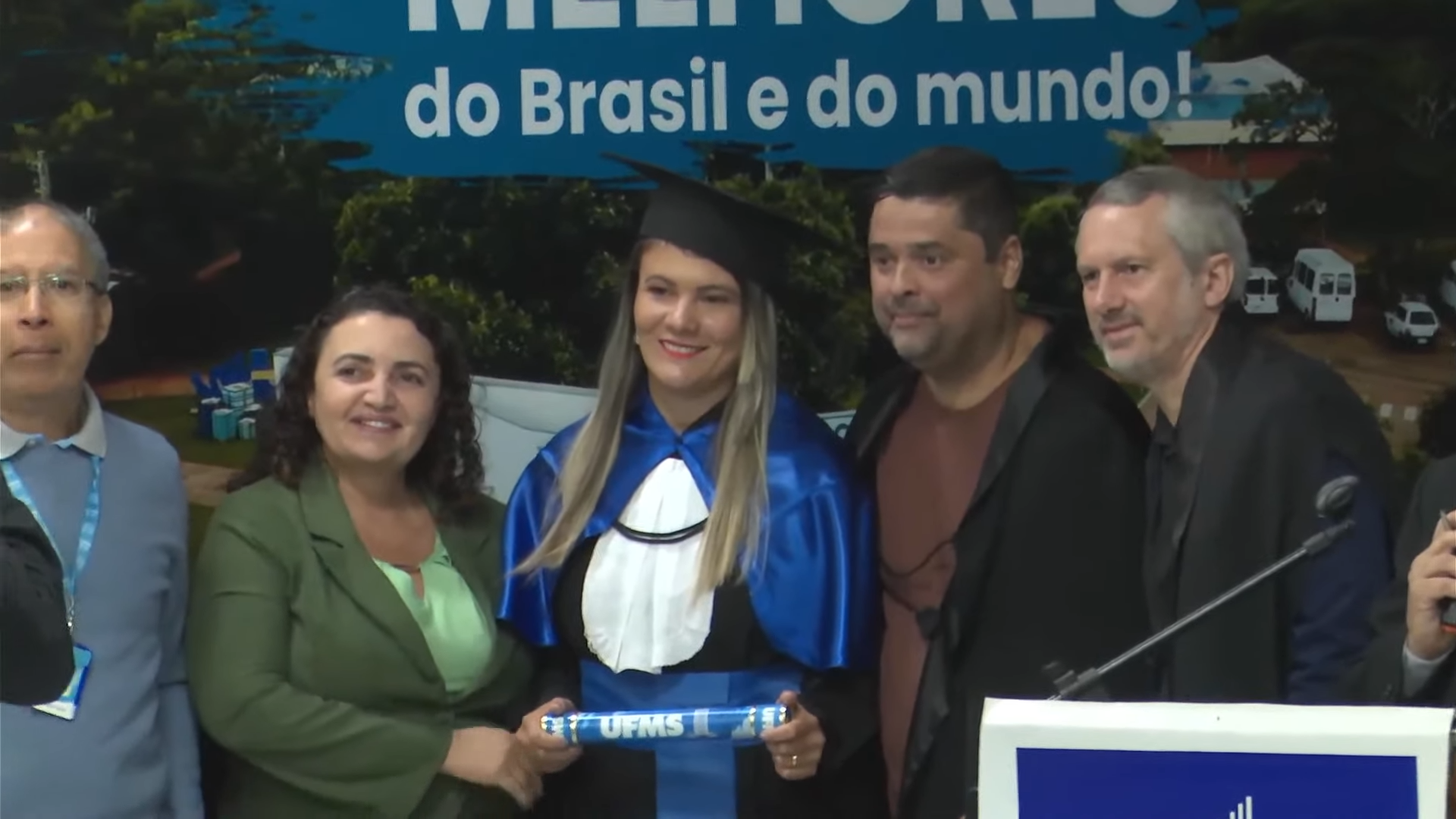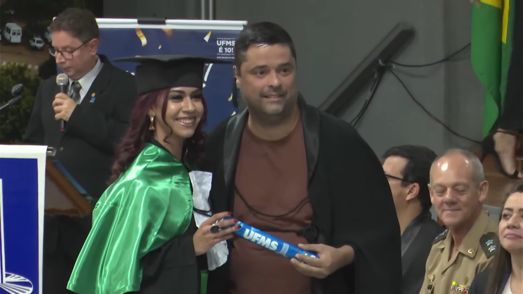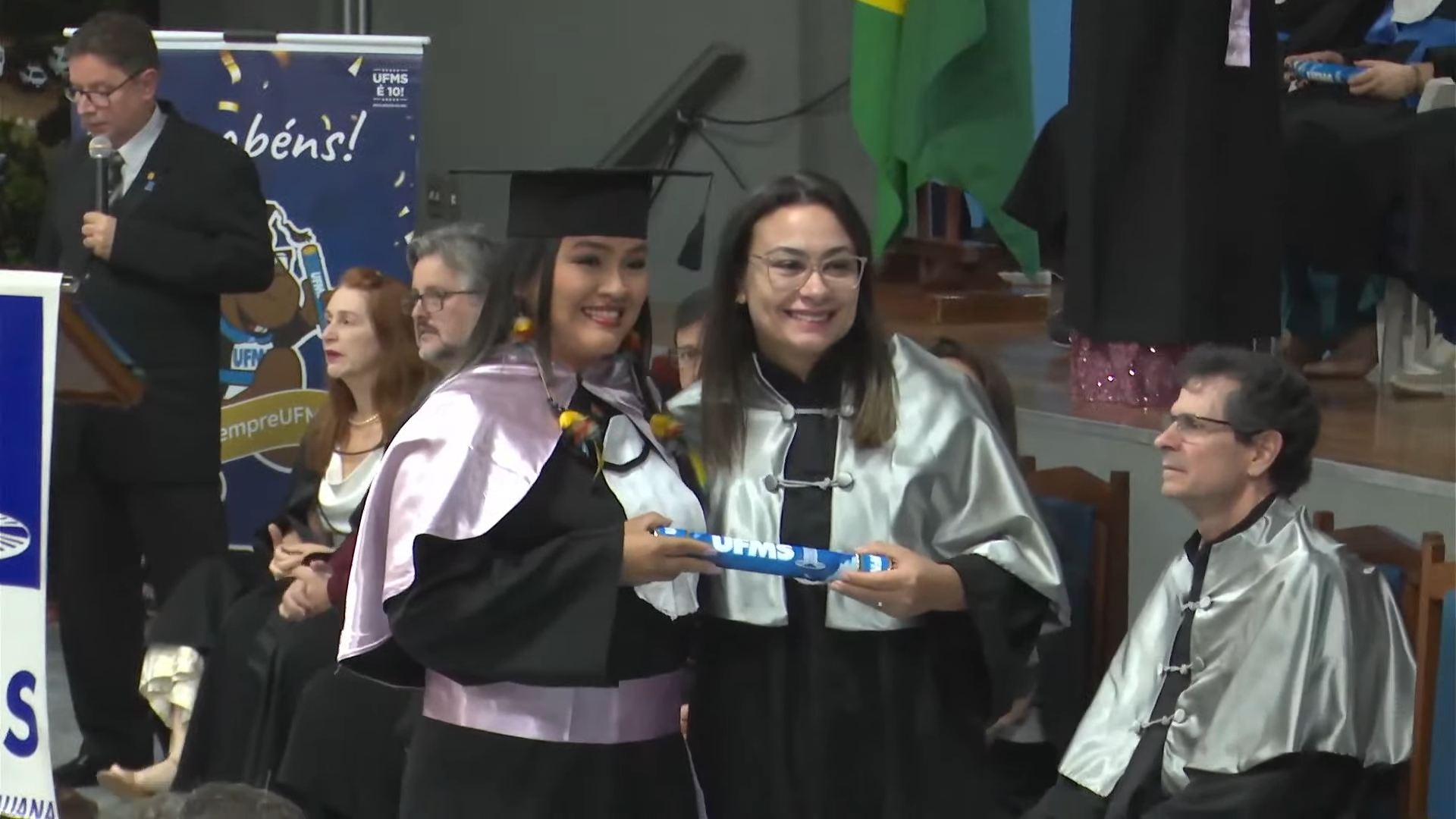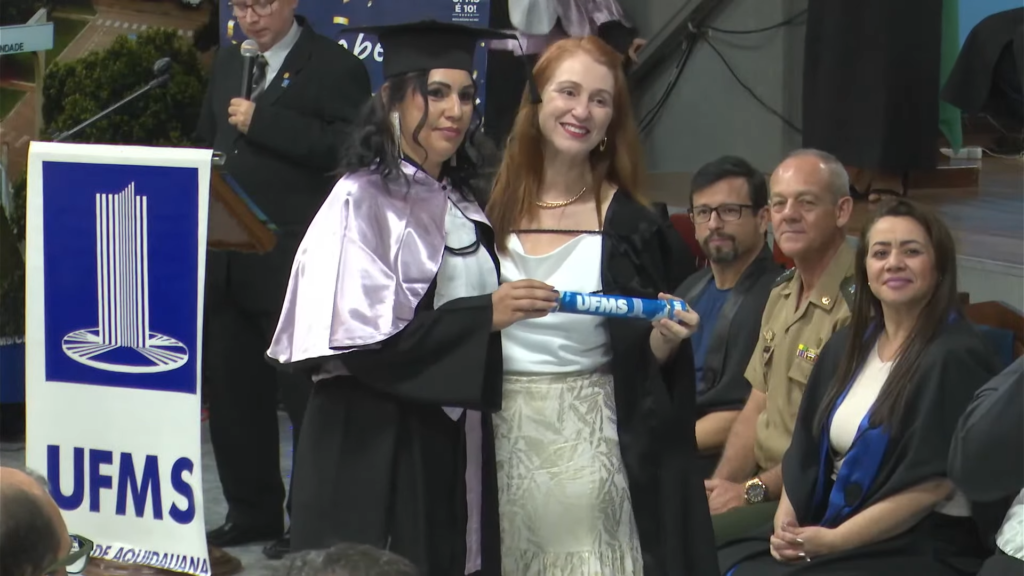 Representando seus colegas, a licenciada em História Mirela Aparecida de Souza emocionou os presentes com um discurso marcado por gratidão, fé e superação. “Eles [os profissionais da UFMS] nos ajudaram, alunos, a chegar até a graduação, oferecendo uma atenção especial, dando e recebendo cuidado, e nos ajudaram a chegar a esse momento vitorioso. Somos muito gratos pelo carinho e pela atenção com que fomos tratados. Dedico essa conquista ao meu esposo, aos meus filhos e também a um filho que já se foi. Ele foi um grande guerreiro e viveu até os 23 anos. Nossa caminhada foi incrível. Cada um de nós passou por momentos difíceis, mas também por risadas, rituais, dor, medo, rejeição, ansiedade e coragem. Mas, no fim, valeu a pena”, assegurou.