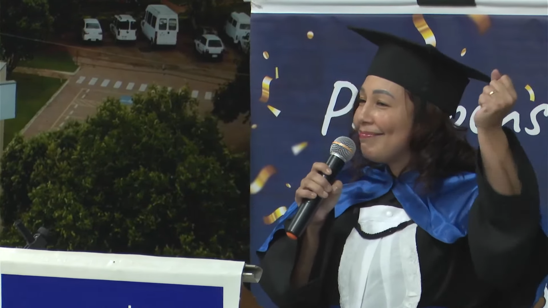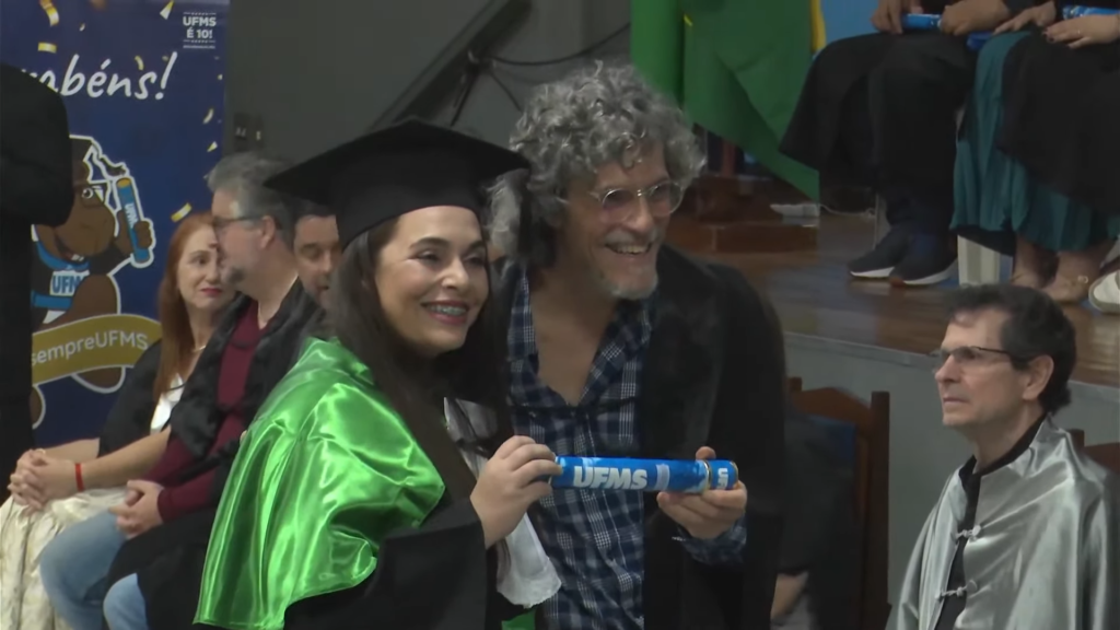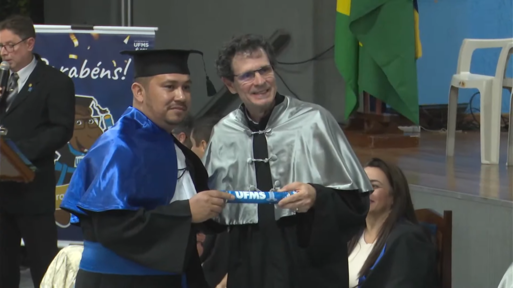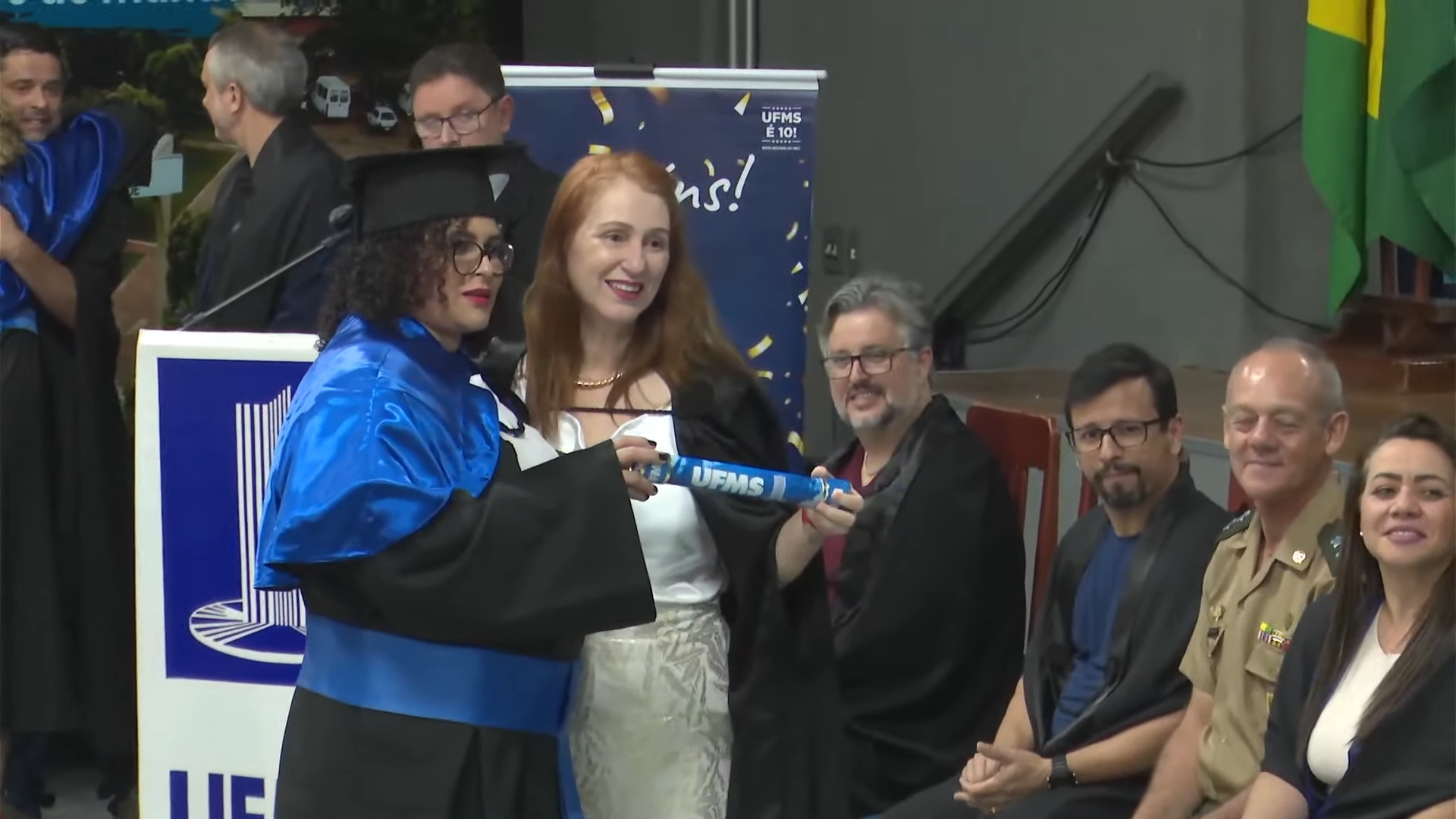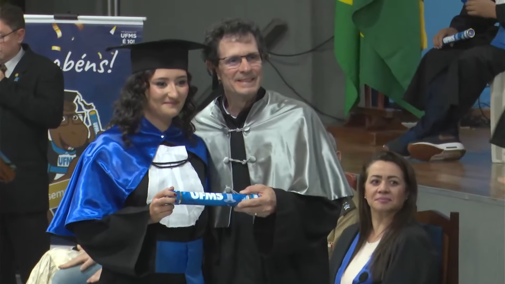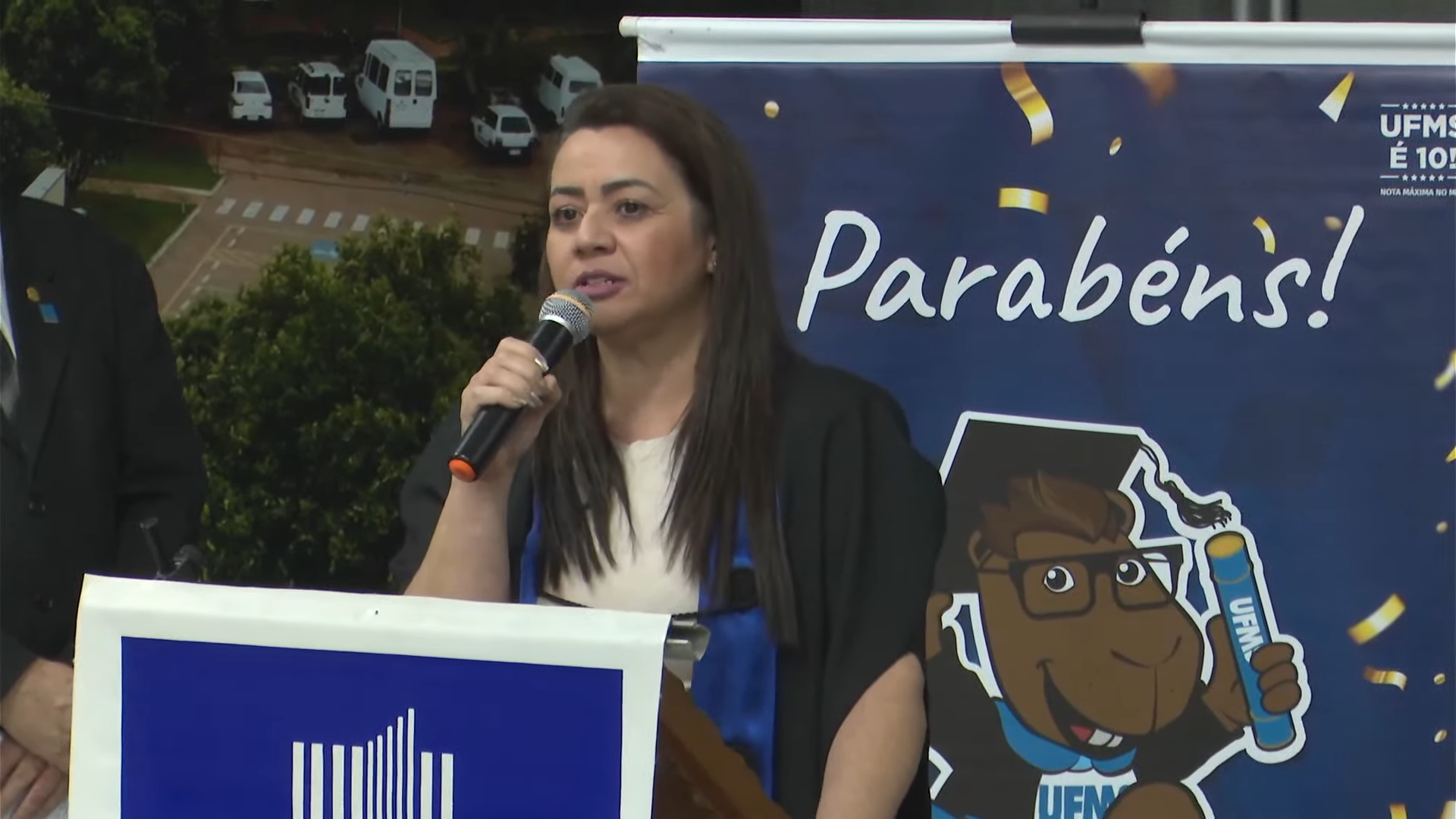 Representando seus colegas, a licenciada em História Mirela Aparecida de Souza emocionou os presentes com um discurso marcado por gratidão, fé e superação. “Eles [os profissionais da UFMS] nos ajudaram, alunos, a chegar até a graduação, oferecendo uma atenção especial, dando e recebendo cuidado, e nos ajudaram a chegar a esse momento vitorioso. Somos muito gratos pelo carinho e pela atenção com que fomos tratados. Dedico essa conquista ao meu esposo, aos meus filhos e também a um filho que já se foi. Ele foi um grande guerreiro e viveu até os 23 anos. Nossa caminhada foi incrível. Cada um de nós passou por momentos difíceis, mas também por risadas, rituais, dor, medo, rejeição, ansiedade e coragem. Mas, no fim, valeu a pena”, assegurou.