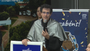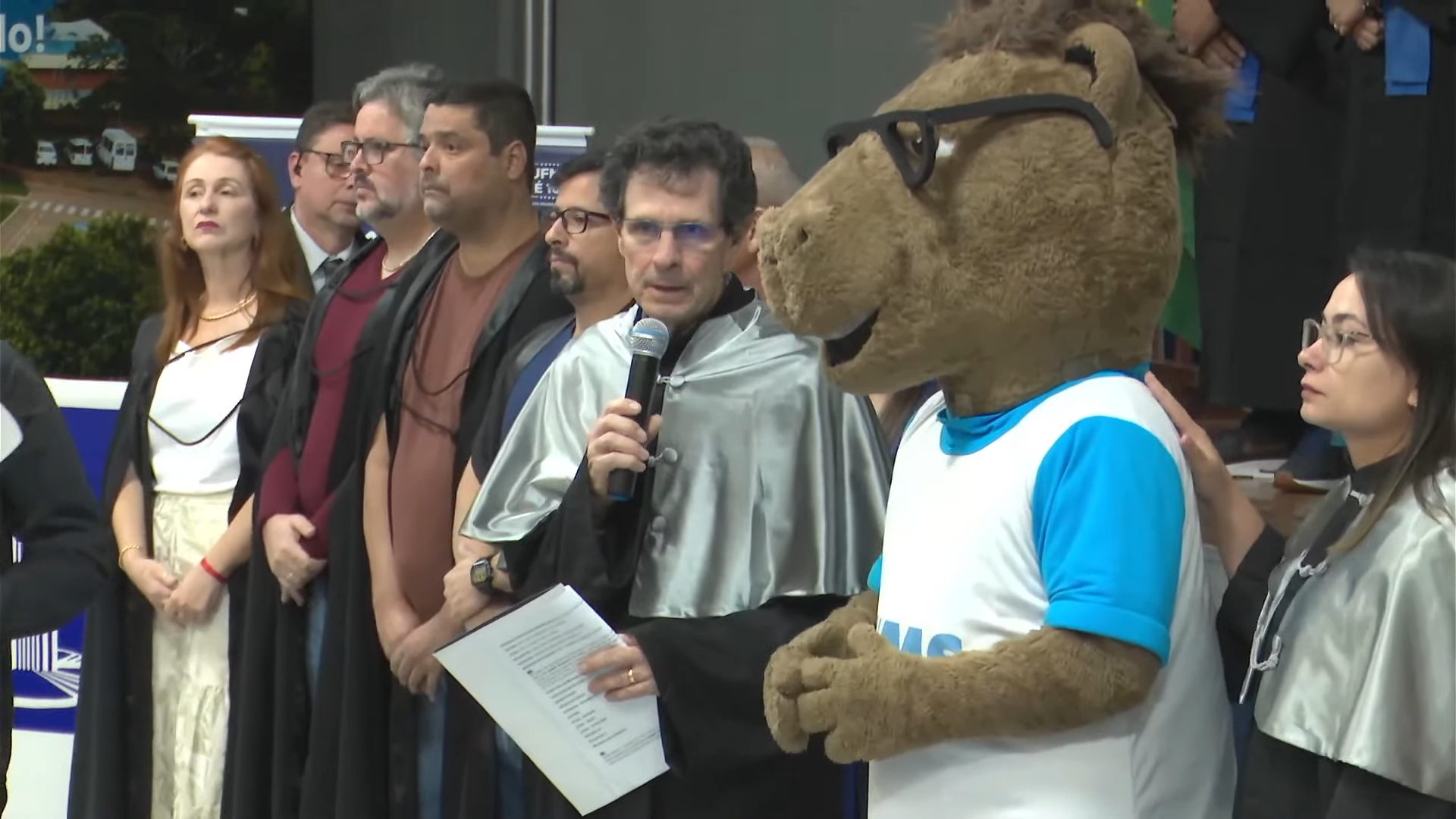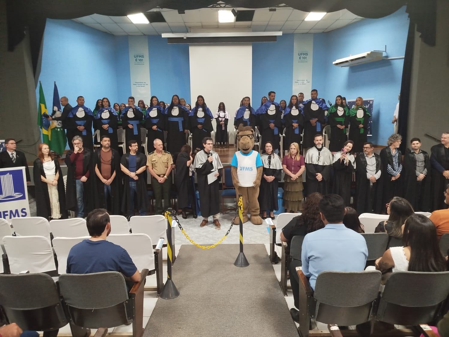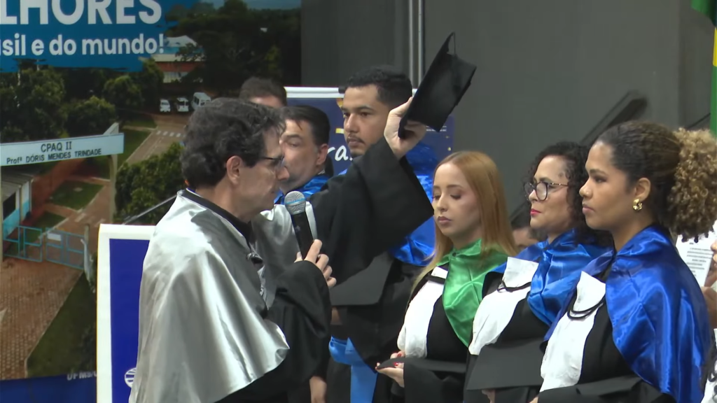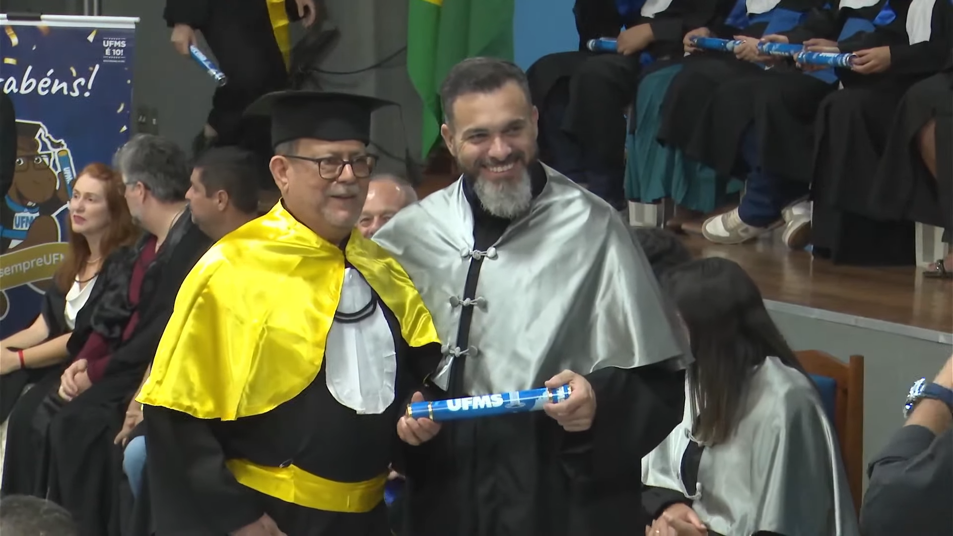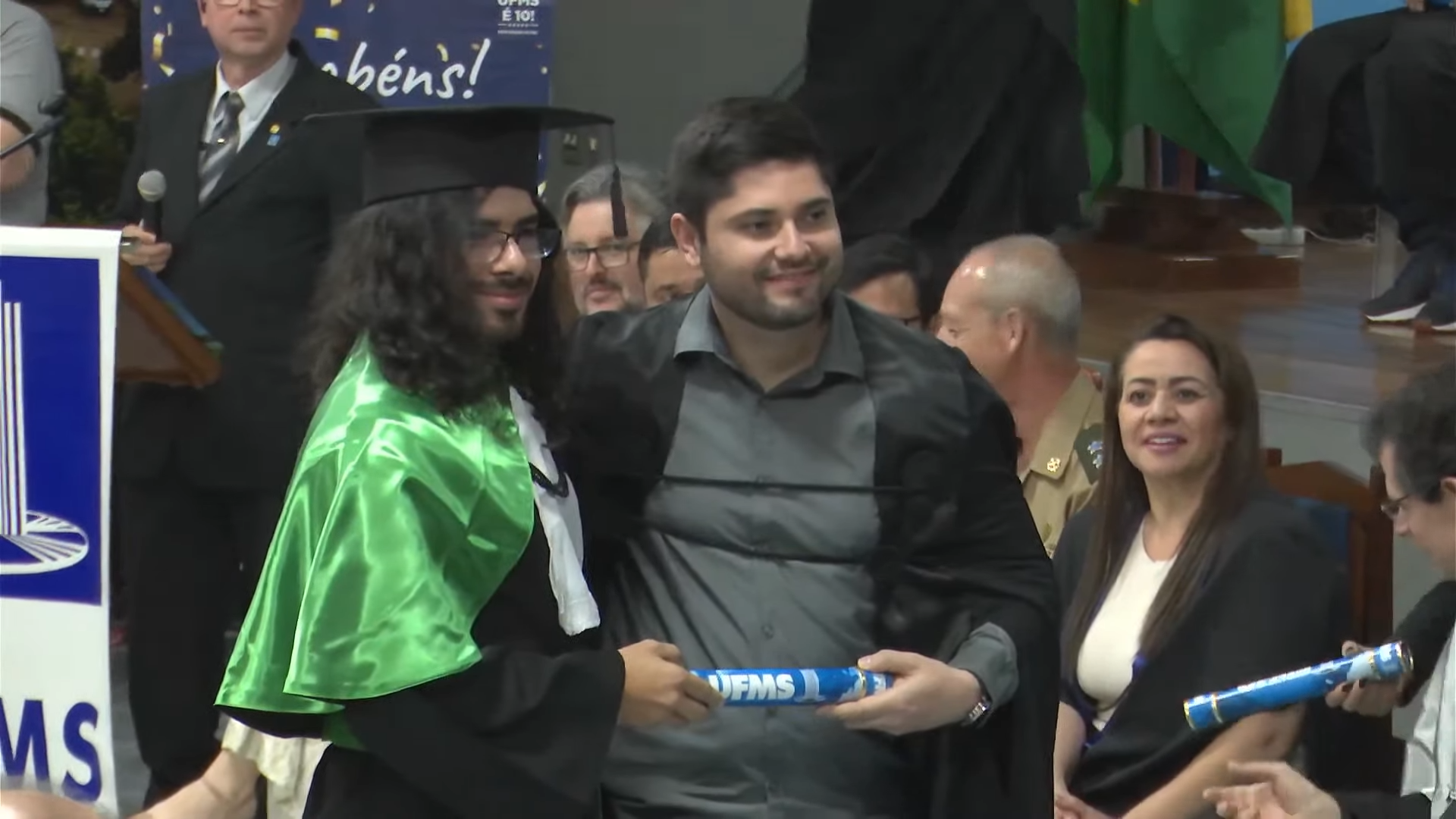 Presidindo a cerimônia, o vice-reitor Albert Schiaveto destacou o poder transformador do conhecimento. “Esta é a festa da educação da nossa Universidade Federal de Mato Grosso do Sul. É preciso uma aldeia inteira para educar uma criança. Vocês estão se formando e tenho certeza absoluta de que essa aldeia, composta por familiares, amigos, professores, servidores, fez parte da formação de cada um de vocês. A presença de todos vocês aqui hoje mostra exatamente isso”, ressaltou.