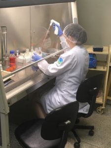Resumidamente, o objetivo do trabalho desenvolvido por Verônica foi analisar os efeitos biológicos do hidrolisado proteico de guavira em células endoteliais e fibroblastos, células que estão envolvidas em processos de cicatrização, reparo tecidual e formação de novos vasos sanguíneos. “Para atingir o objetivo central do estudo, foi feito o mapeamento do bioprocessamento dos frutos de guavira em farinha, concentrado proteico e hidrolisados. Foi feita a composição centesimal da farinha dos frutos de guavira, o isolamento do concentrado proteico e a digestão simulada gástrica in vitro desse concentrado utilizando as mesmas enzimas digestivas que atuam em nosso trato gastrointestinal”, detalha. “O produto dessa digestão é o hidrolisado proteico de guavira, um conjunto de proteínas quebradas em pedacinhos menores que chamamos de peptídeos e são esses peptídeos que podem possuir ação em nosso organismo colaborando com nossa saúde e qualidade de vida”, fala a pesquisadora.