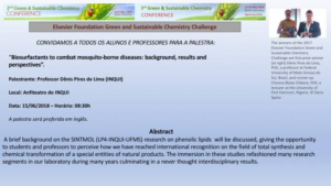 Desenvolvido no Instituto de Química da UFMS, o projeto “Biossurfactantes para Combater Doenças Transmitidas por Mosquitos” foi o vencedor do Desafio em Química Verde e Sustentável da Fundação Elsevier (Elsevier Foundation Green and Sustainable Chemistry Challenge), realizado em maio de 2017 na Alemanha.