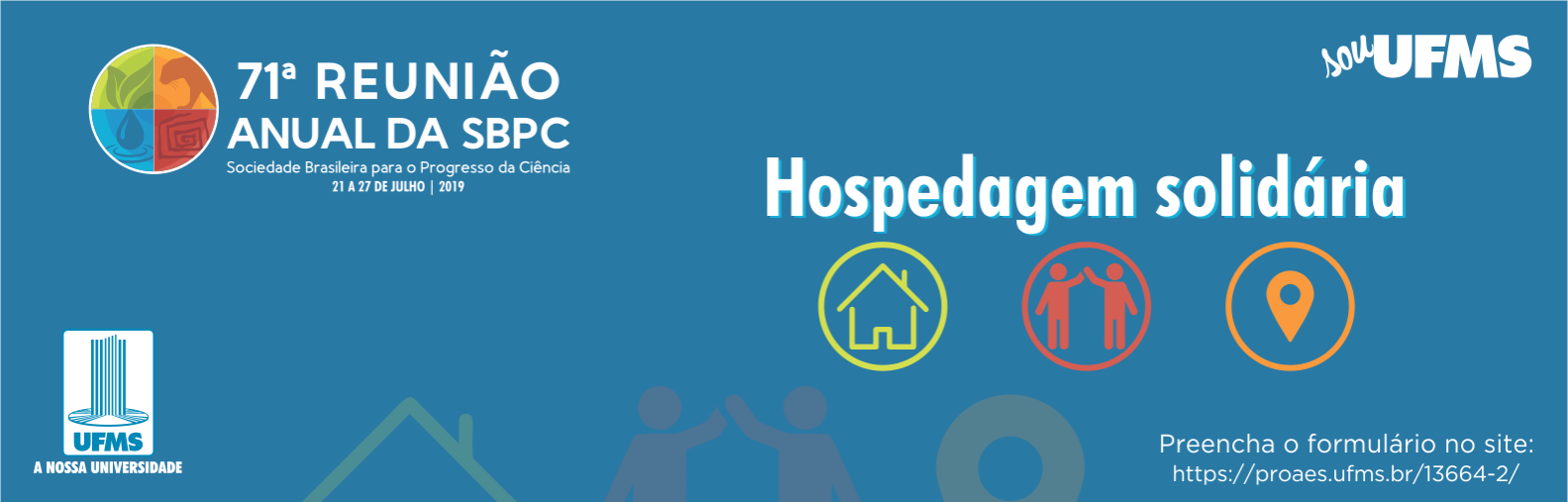 Todas as informações sobre os anfitriões e tipo de hospedagem podem ser conferidas abaixo. Os interessados devem contatar diretamente o hospedador, que deve informar a comissão imediatamente após o preenchimento da vaga, enviando um e-mail para sbpc.hospedagem@ufms.br