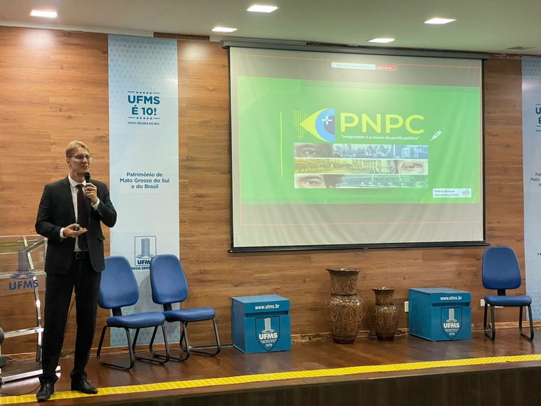 Em seguida, um dos destaques da programação foi a palestra do secretário do Tribunal de Contas da União em Mato Grosso do Sul, Mário Júnior Bertuol, referência nacional em governança pública e auditoria de políticas sensíveis, como defesa sanitária, controle de fronteiras e imigração. Em sua apresentação, Bertuol ressaltou que integridade pública é uma estratégia de proteção institucional que reduz vulnerabilidades, fortalece a confiança social e contribui para a melhoria dos serviços públicos.