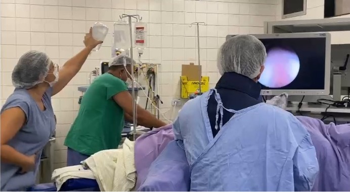 De acordo com o urologista e preceptor da residência médica do Humap-UFMS/Ebserh, João Juveniz, a nova tecnologia amplia significativamente a capacidade de tratamento de cálculos renais, especialmente em áreas que antes não eram alcançadas. “O ureterorrenoscópio flexível a laser é um aparelho endoscópico que nos permite navegar por todo o trato urinário, desde a uretra até as partes mais profundas do rim, sem a necessidade de cortes. Ele possui uma microcâmera que nos dá visão em tempo real e, com o laser, conseguimos fragmentar os cálculos em pequenos pedaços. Isso facilita tanto a eliminação natural quanto a retirada dos fragmentos”, explica.