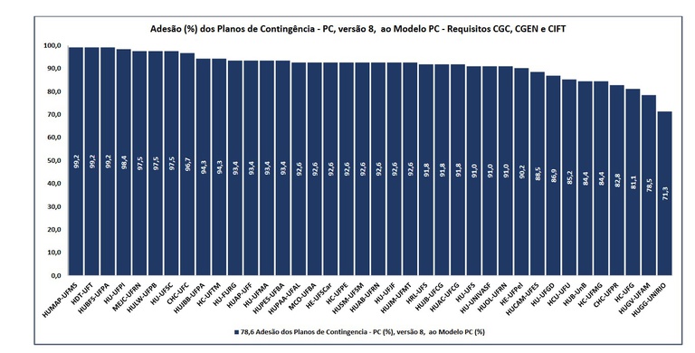 No ano de 2022 foi solicitada a atualização versão 8 do Plano de Contingência. O plano do Hospital Universitário Maria Aparecida Pedrossian, da Universidade Federal de Mato Grosso do Sul (Humap-UFMS/Ebserh), recebeu destaque por ter o maior alto grau de adesão ao modelo que foi proposto pela rede Ebserh, com 99,2%, empatando na primeira colocação com o Hospital de Doenças Tropicais, da Universidade Federal do Tocantins (HDT-UFT) e Hospital Universitário Bettina Ferro de Souza, da Universidade Federal do Pará (HUBFS-UFPA).