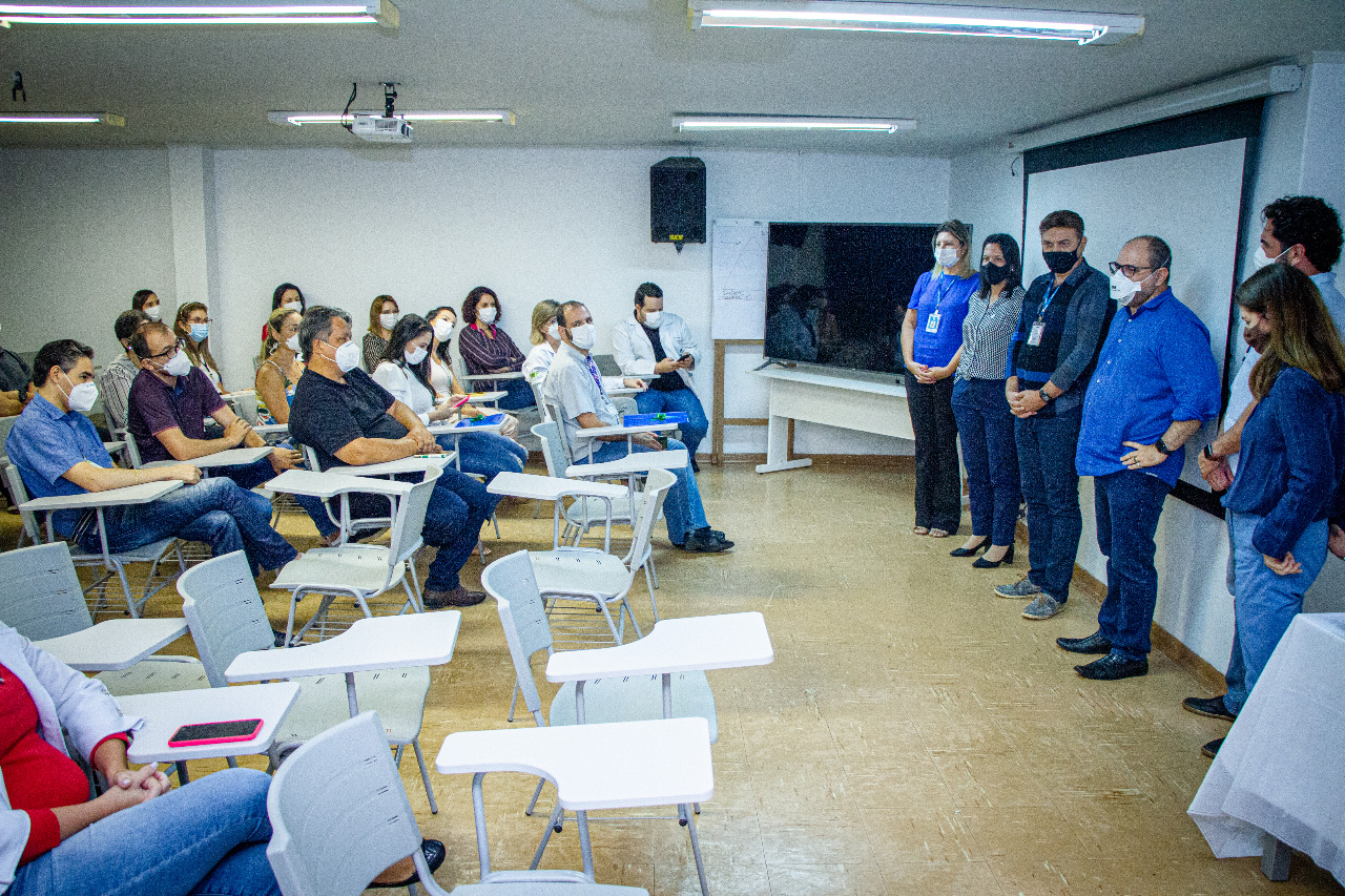 O reitor Marcelo Turine e a vice-reitora Camila Ítavo participaram do evento, que ocorreu no auditório da Gerência de Ensino e Pesquisa (GEP) do Hospital, seguindo todos os protocolos de biossegurança, com transmissão ao vivo pelo Facebook. “É um momento de comemoração e por isso agradeço a todos os presentes. Vocês são um alicerce importante para a Universidade e representam o empoderamento da Saúde. O Humap-UFMS é uma instituição de referência em média e alta complexidade. Desde 2016, vimos ajudando o Hospital e agradeço ao Cláudio que tem contribuído muito, auxiliando-nos a modificar os processos, implementar a governança, focando em ações estratégicas e aliando assistência com ensino, cuidando dos nossos acadêmicos e residentes”, disse o reitor.