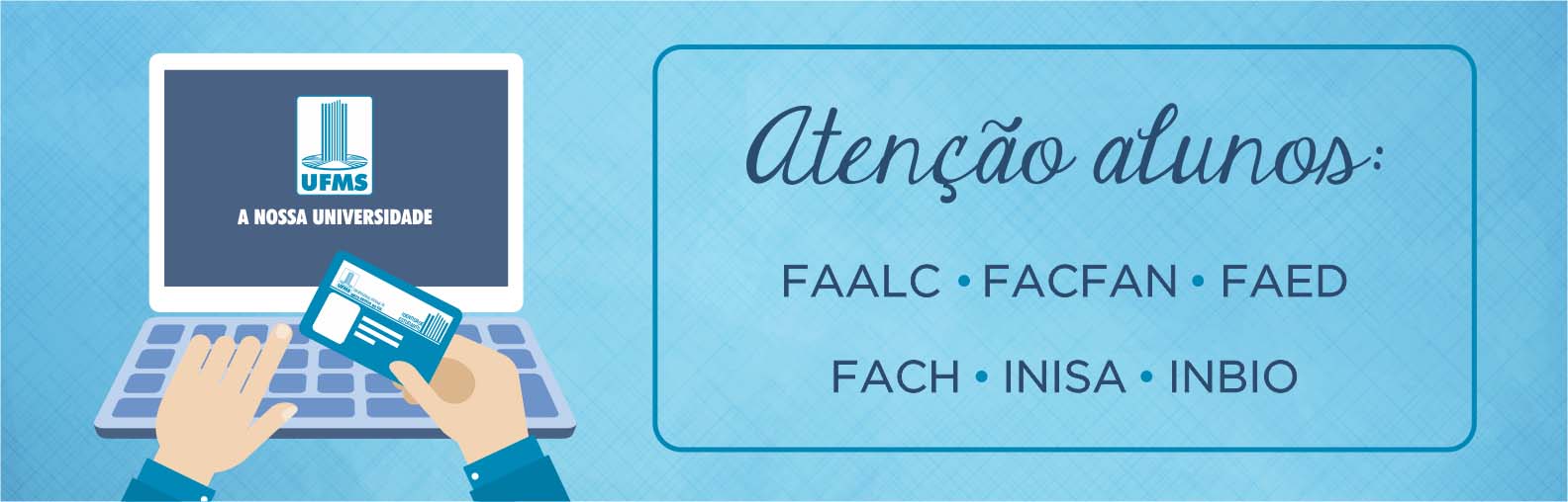 Informamos que em razão da recente reestruturação administrativa da Universidade Federal de Mato Grosso do Sul (UFMS), mudança que resultou na divisão do Centro de Ciências Humanas e Sociais (CCHS) e do Centro de Ciências Biológicas e da Saúde (CCBS) em seis novas unidades, os acadêmicos dos cursos da Faculdade de Artes, Letras e Comunicações (FAALC), da Faculdade de Ciências Humanas (FACH), da Faculdade de Educação (FAED), da Faculdade de Ciências Farmcêucitas, Alimentos e Nutrição (FACFAN),  do Instituto de Biociências (INBIO) e do Instituto Integrado de Saúde (INISA) deverão aguardar o processo de migração dos dados no SISCAD para a confecção das carteirinhas estudantis.