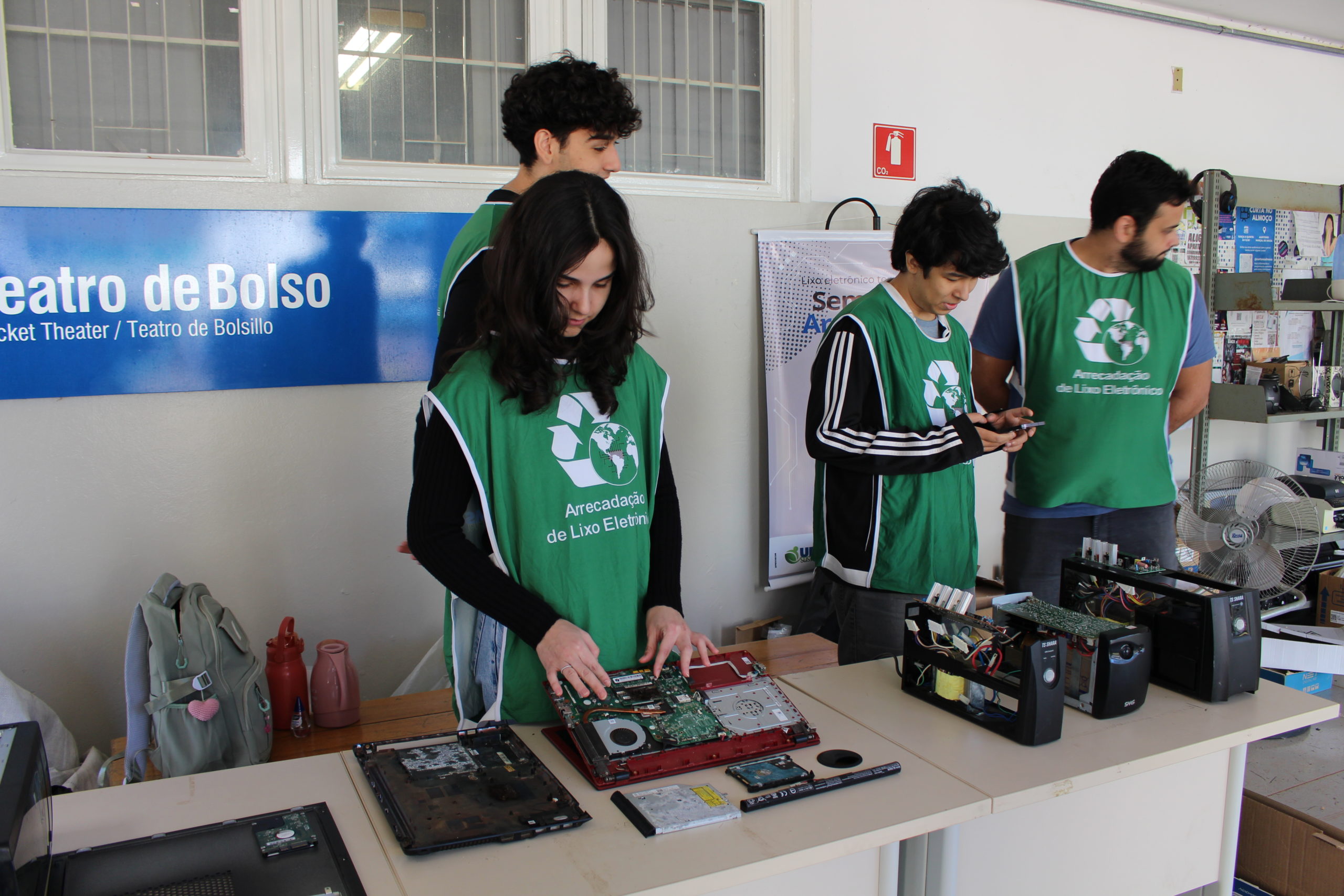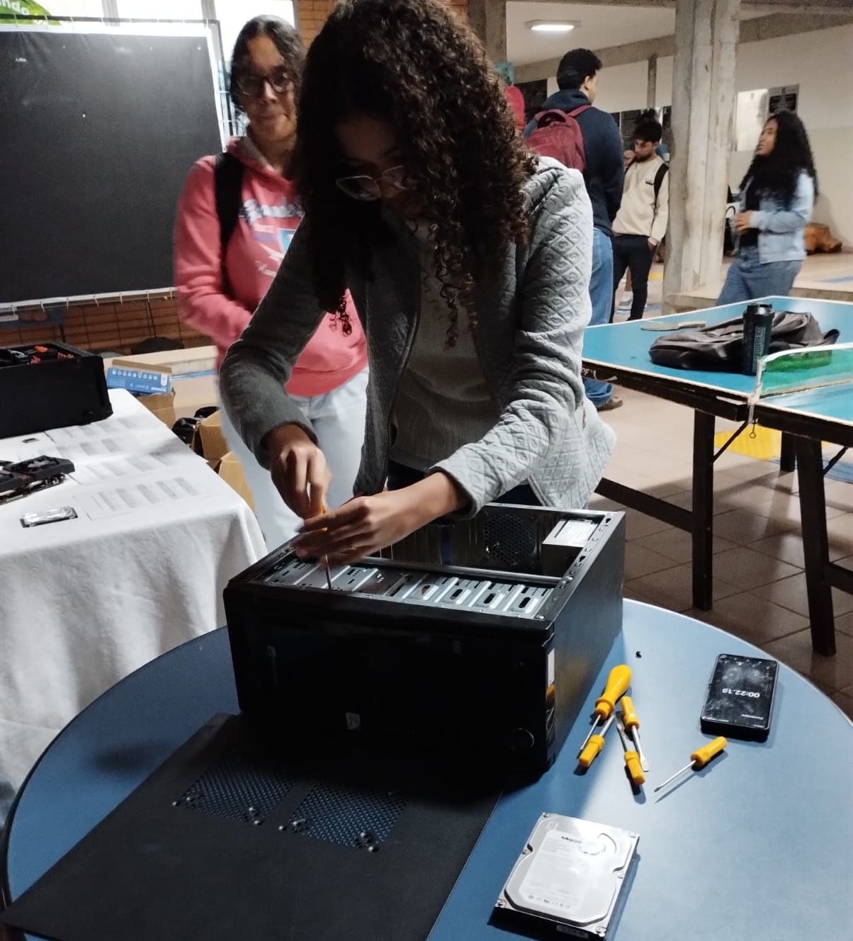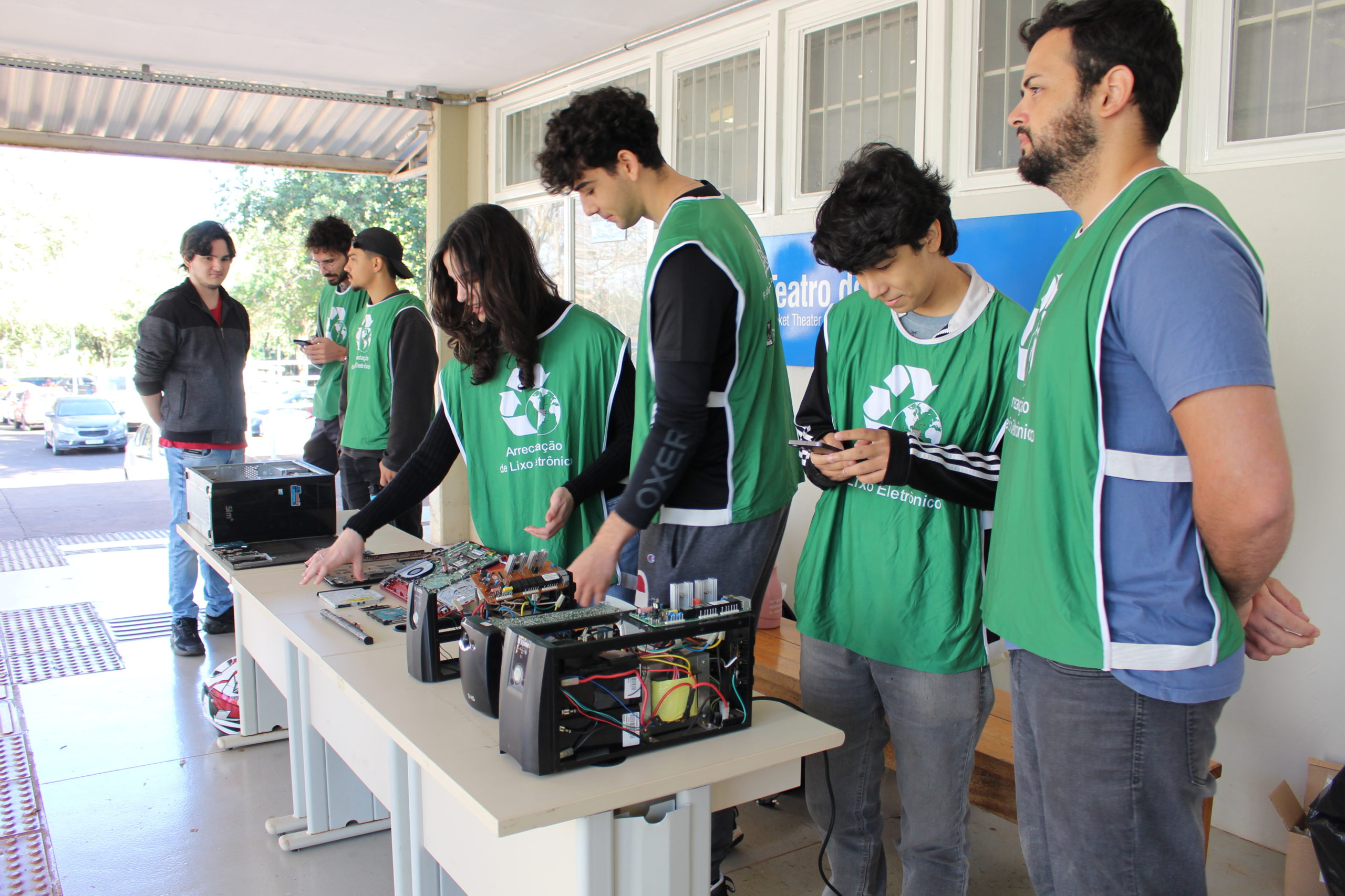 Na Cidade Universitária, um grupo de estudantes estava engajado na organização, recepção, recolhimento e análise do material descartado. “É importante a colaboração de todos, pois muitas pessoas descartam algo que não utilizam mais, porém servem ainda para alguém, além de ser possível também tirar peças dos aparelhos e utiliza-las. Sempre quando chega algum equipamento, nós organizamos na prateleira e fica ali pra todos que quiserem vir ver. É interessante também porque a gente consegue ver equipamentos por dentro e até outros que nunca tivemos contato, muito antigos, como fitas cassetes, aparelhos de DVD”, contou a estudante do curso de Engenharia da Computação da Facom Priscila Valente.