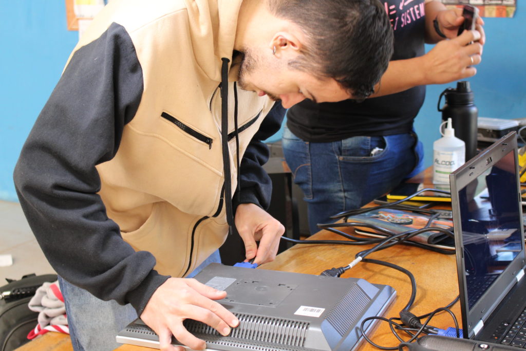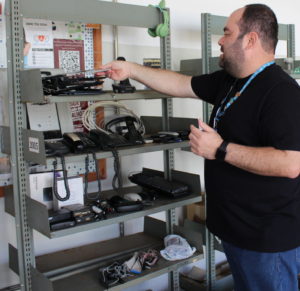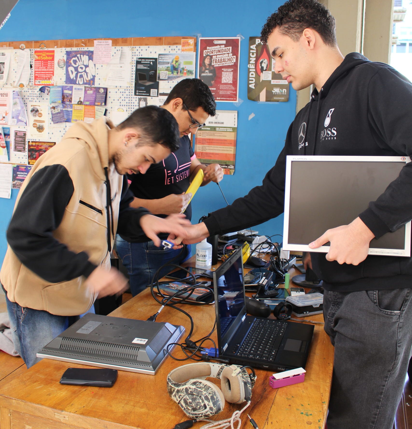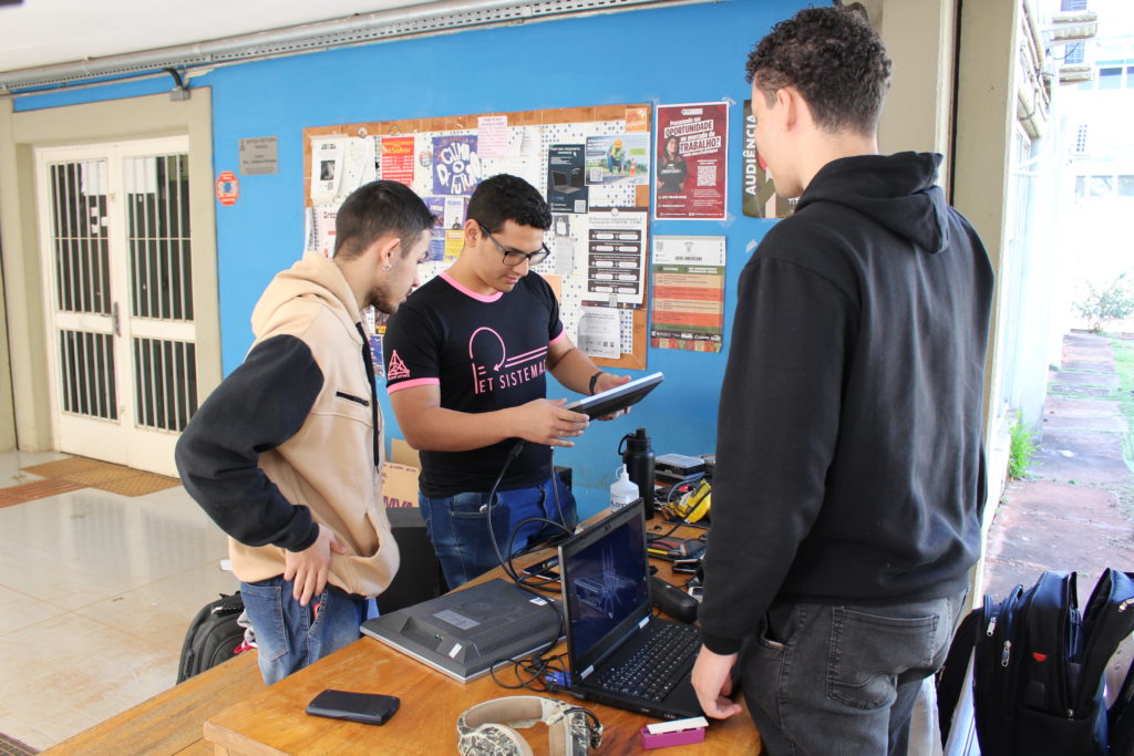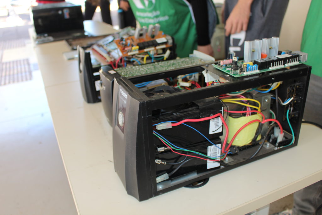 “Dependendo dos equipamentos que são entregues, analisamos e trazemos para a mesa, como computador, celular, nós testamos e vemos se liga, tentamos identificar o problema, se é fácil de consertar. Alguns notebooks e computadores foram inclusive montados na Semana [de Arrecadação] do Lixo Eletrônico e disponibilizados pra estudantes que não tinham. O lixo de uns é o luxo do outro. Muitas vezes também são descartadas coisas que as pessoas não querem mais, mas outros querem. Sempre tem algo interessante que alguém descartou e outro está precisando. Nós arrumamos, vemos o que dá pra consertar”, explicou Gabriel. De acordo com ele os itens mais recebidos são celulares, notebooks, chapinha de cabelo, micro-ondas, monitores, telefones, impressoras e cabos.