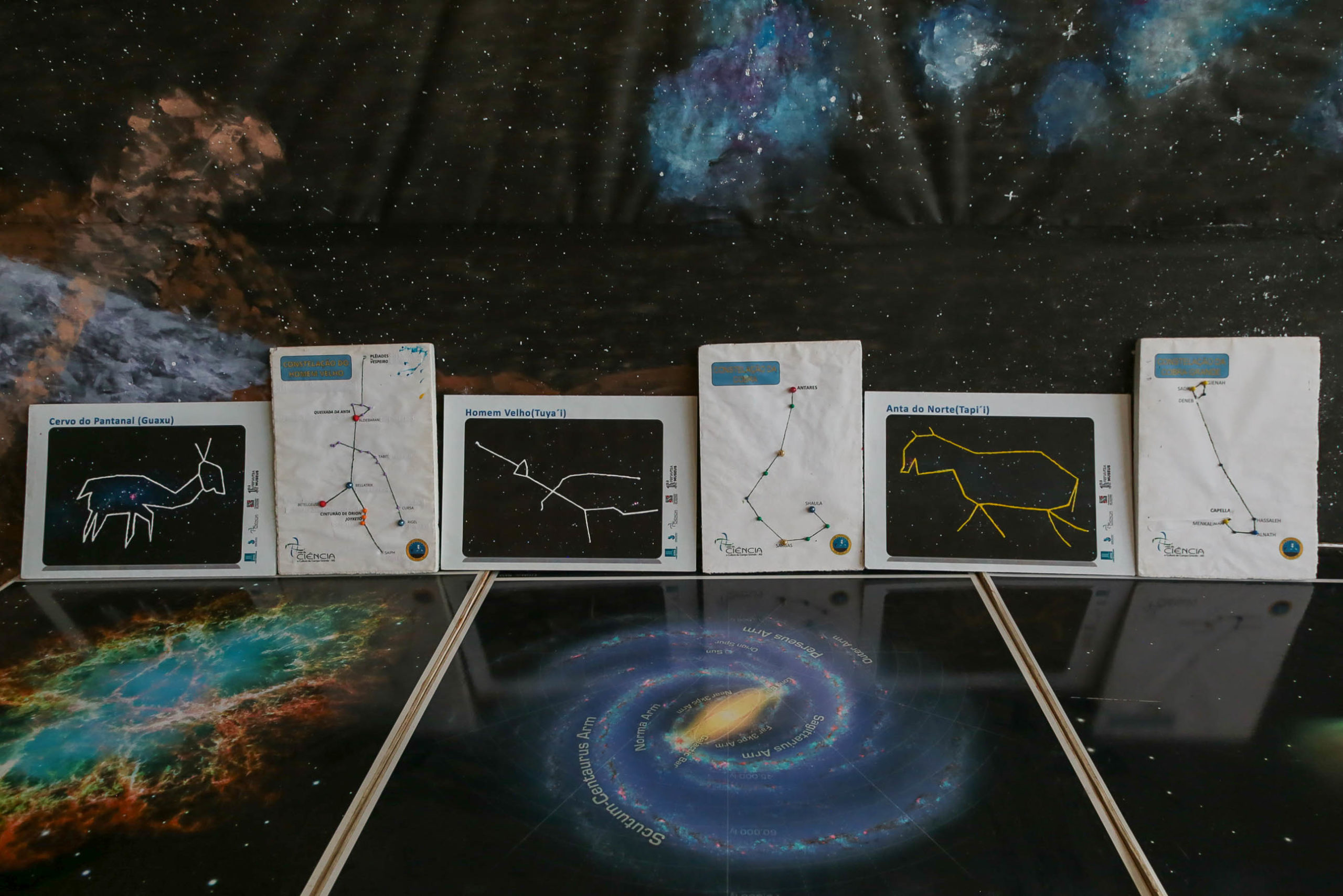 Segundo a coordenadora da iniciativa, os painéis oferecem uma oportunidade de comparar as diferentes interpretações culturais do céu. “É um trabalho de divulgação científica, com vistas a esse cunho mais educativo. Por isso, os painéis representam as constelações ligando as estrelas da maneira como um povo ou outro vê, como a cultura hegemônica e a indígena entendem a mesma região do céu”, explica.