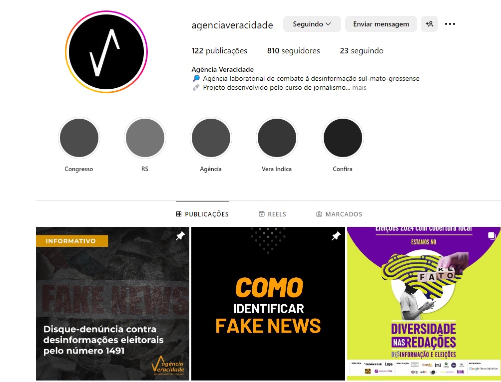 “O diferencial do projeto é ampliar o senso crítico de estudantes e pessoas que nos acompanham no Instagram @agenciaveracidade sobre como as plataformas digitais atuam hoje como meios de acesso à informação e como os algoritmos manipulam a percepção sobre temas do cotidiano e influenciam nas nossas opiniões”, destaca Tais. “Com recursos da Fundect-MS, o projeto envolve bolsistas de graduação e pós-graduação na área da comunicação, desenvolvendo conteúdos de checagem de fatos e informativos. Ver o projeto na lista de pré-aprovados na primeira fase para o Prêmio EBC de Combate à Desinformação mostra que estamos no caminho certo”, ressaltou.