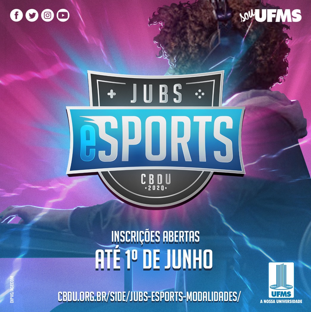 Até dia 1º de junho estão abertas as inscrições para a primeira edição dos Jogos Universitários Brasileiros (JUBs) eSports. A competição é promovida pela Confederação Brasileira do Desporto Universitário (CBDU) e será totalmente on-line, contemplando cinco modalidades: FIFA20, League of Legends (LoL), Clash Royale, Poker e Acadêmico.