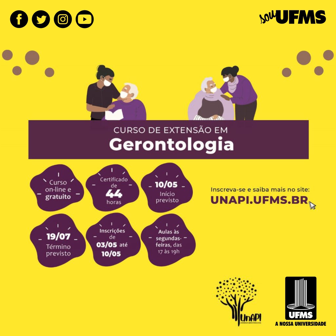 Até 7 de maio, profissionais da saúde interessados no cuidado à pessoa idosa, assim como estudantes da graduação e pós-graduação da UFMS e de outras instituições de ensino podem participar do curso de extensão em Gerontologia.