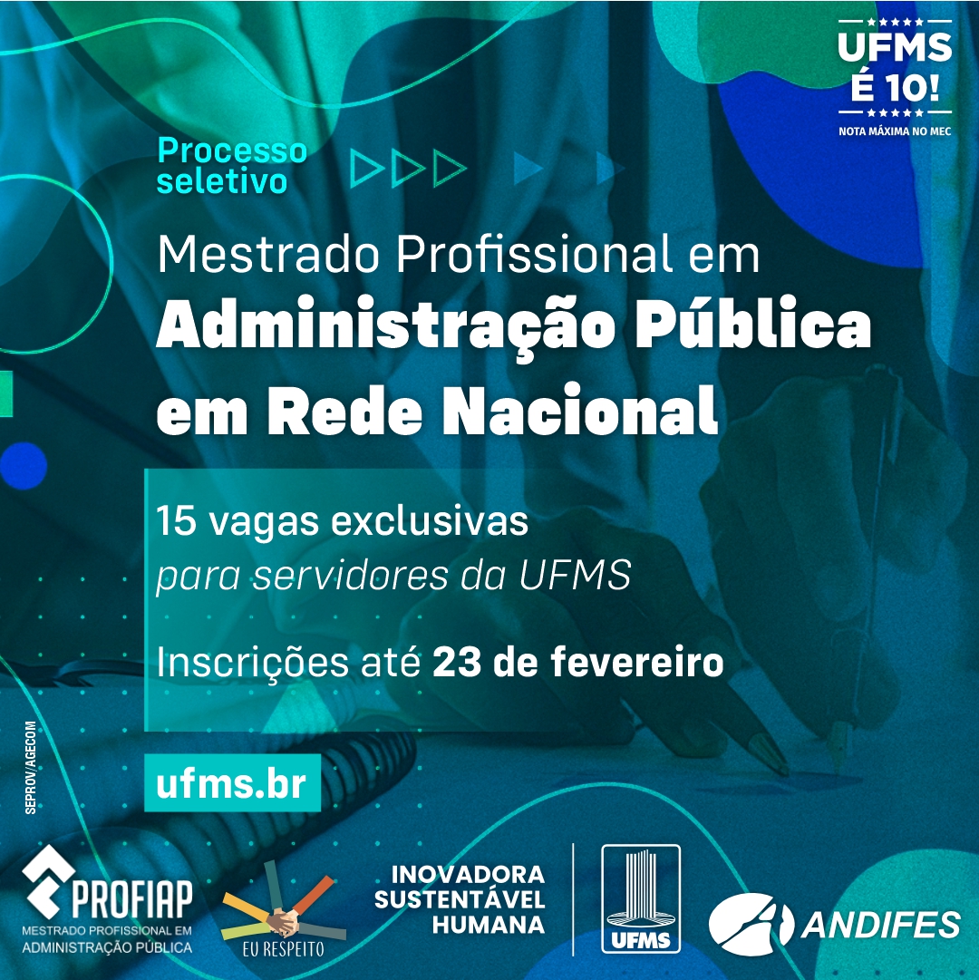 A UFMS é uma das instituições associadas que oferecem o Programa. “O Profiap oferece uma excelente oportunidade para servidores da Instituição, considerando que o curso é voltado ao aprimoramento da administração pública e desenvolvimento de profissionais para a prática administrativa avançada. A oferta de vagas exclusivas para servidores da UFMS, sendo três delas destinadas a ações afirmativas, reforça o compromisso do Programa com o desenvolvimento de competências alinhadas às necessidades do serviço público. Além disso, o curso contribui para a produtividade e eficiência na administração pública, valores fundamentais para servidores que almejam ou se encontram em posição de liderança e decisão”, destaca o coordenador do Profiap na Universidade, Marcelo Silva.