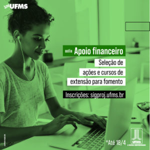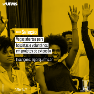 Coordenadores de projetos e cursos de extensão da UFMS interessados no recebimento de apoio financeiro e na atuação de bolsistas e voluntários em suas ações, têm até 18 de abril para inscreverem propostas no Sistema de Informação e Gestão de Projetos (Sigproj). Segundo o pró-reitor de Extensão, Cultura e Esporte (Proece), Marcelo Fernandes, “a extensão já é considerada curricular na Universidade e traz benefícios tanto ao estudante, quanto ao coordenador da ação, à Universidade e ainda à sociedade, que se beneficia das iniciativas”.