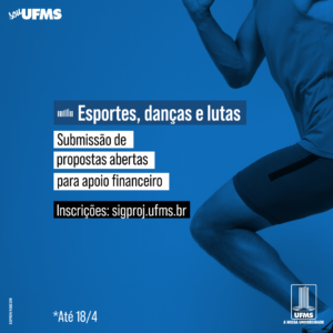 O apoio financeiro voltado aos projetos de esportes, danças e lutas será disponibilizado por meio do Programa Esporte Universitário (PEU). Ao todo serão disponibilizados pela UFMS até R$ 50 mil para o fomento às ações.