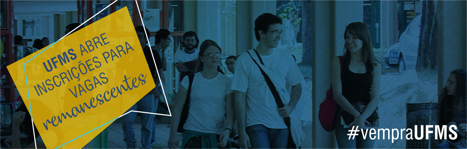 De 24 de fevereiro a 4 de março de 2018 estão abertas as inscrições para vagas remanescentes para ingresso no 1º e no 2º semestres do ano letivo de 2018 na UFMS. Podem participar candidatos que tenham realizado o Exame Nacional de Ensino Médio (Enem) nos anos de 2013, 2014, 2015, 2016 ou 2017, sendo permitida apenas uma inscrição por CPF. As oportunidades são para diversos cursos e câmpus da Universidade.