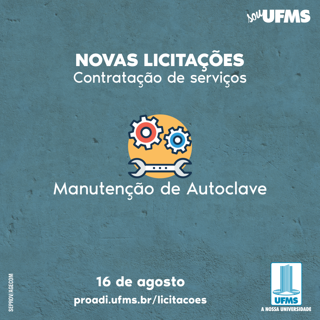 Na próxima segunda-feira, 16, a UFMS realiza pregão eletrônico visando a contratação de empresa para prestação de serviços especializados de manutenção corretiva e preventiva e com fornecimento de materiais sobressalentes para autoclave nas clínicas da Faculdade de Odontologia, na Cidade Universitária.