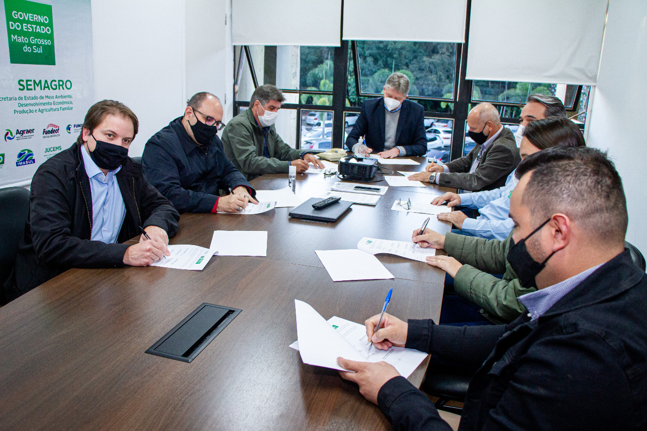 Na tarde de ontem, 1, foi realizada uma reunião na Secretaria de Meio Ambiente, Desenvolvimento Econômico, Produção e Agricultura Familiar (Semagro) para assinatura de Termo de Cooperação Técnica e Administrativa do Programa Estadual de Desenvolvimento e Fortalecimento do Cooperativismo em Mato Grosso do Sul, o Procoop.