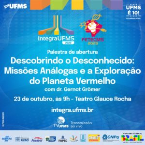 O maior evento de Ciência, Tecnologia, Inovação e Empreendedorismo de Mato Grosso do Sul preparou uma programação especial a partir do dia 23 de outubro, na Cidade Universitária. Além de mais de 1,6 mil trabalhos científicos e a expectativa de receber mais de 10 mil visitantes, o Integra UFMS 2023 ainda terá a abertura com apresentação de cheerleading e palestra sobre exploração em Marte. A abertura e as palestras de destaque do evento serão realizadas nos dias 23, 25 e 27, no Teatro Glauce Rocha, com transmissão ao vivo pelo canal da TV UFMS. A programação completa pode ser conferida aqui.