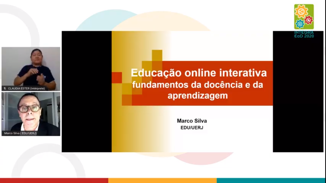 Encerrando a noite e dando o pontapé inicial na programação, o professor Marco Silva, da Universidade do Estado do Rio de Janeiro (UERJ), ministrou a conferência “Educação on-line interativa: fundamentos da docência e da aprendizagem”.