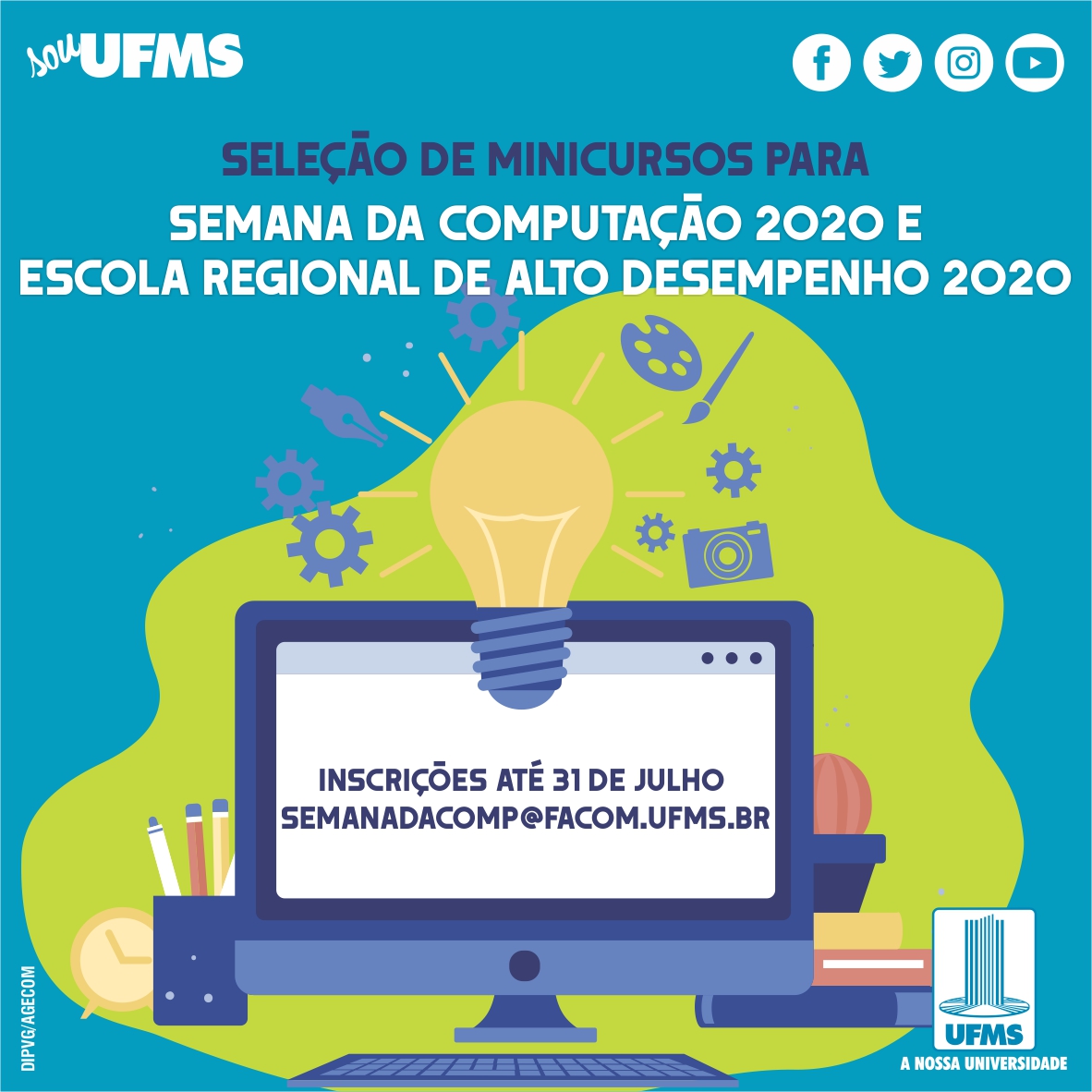 A organização da Semana da Computação e da Escola Regional de Alto Desempenho da Região Centro Oeste (Secomp-Erad 2020) da UFMS recebe propostas para a realização de minicursos virtuais. Os interessados têm até 31 de julho para a submissão por meio do e-mail semanadacomp@facom.ufms.br. Podem participar pessoas de toda a comunidade que tenham domínio do assunto proposto.