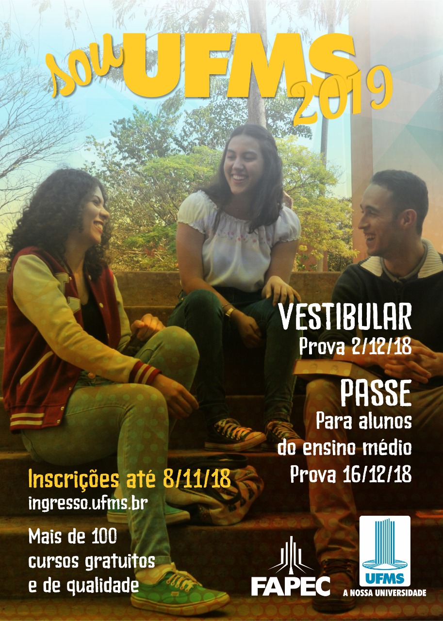 As inscrições para os processos seletivos seguem abertas até 08 de novembro. A prova do Vestibular UFMS será realizada no dia 02 de dezembro. E as provas da primeira (triênio 2018-2020) e segunda (triênio 2017-2019) Etapas do PASSE serão aplicadas no dia 16 de dezembro.