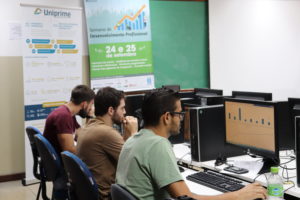 Ontem (24) acadêmicos de diversos cursos da Cidade Universitária realizaram uma atividade educativa e divertida. Eles puderam conhecer e disputar o jogo virtual LatinBank Uniprime, aplicado pelos professores da Universidade Federal do Paraná Gustavo Abib e Tomas Sparano Martins, com a participação do responsável pelo marketing da Uniprime na região Centro-Oeste, Jack Barnes.