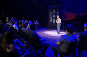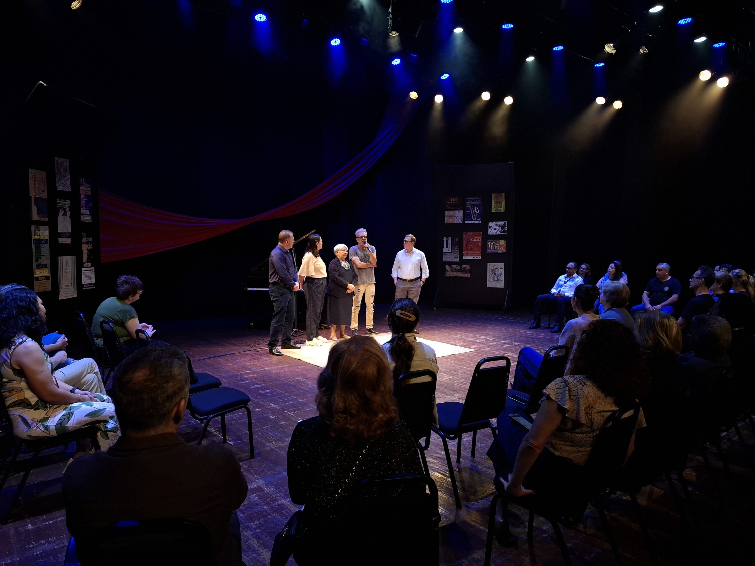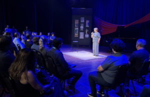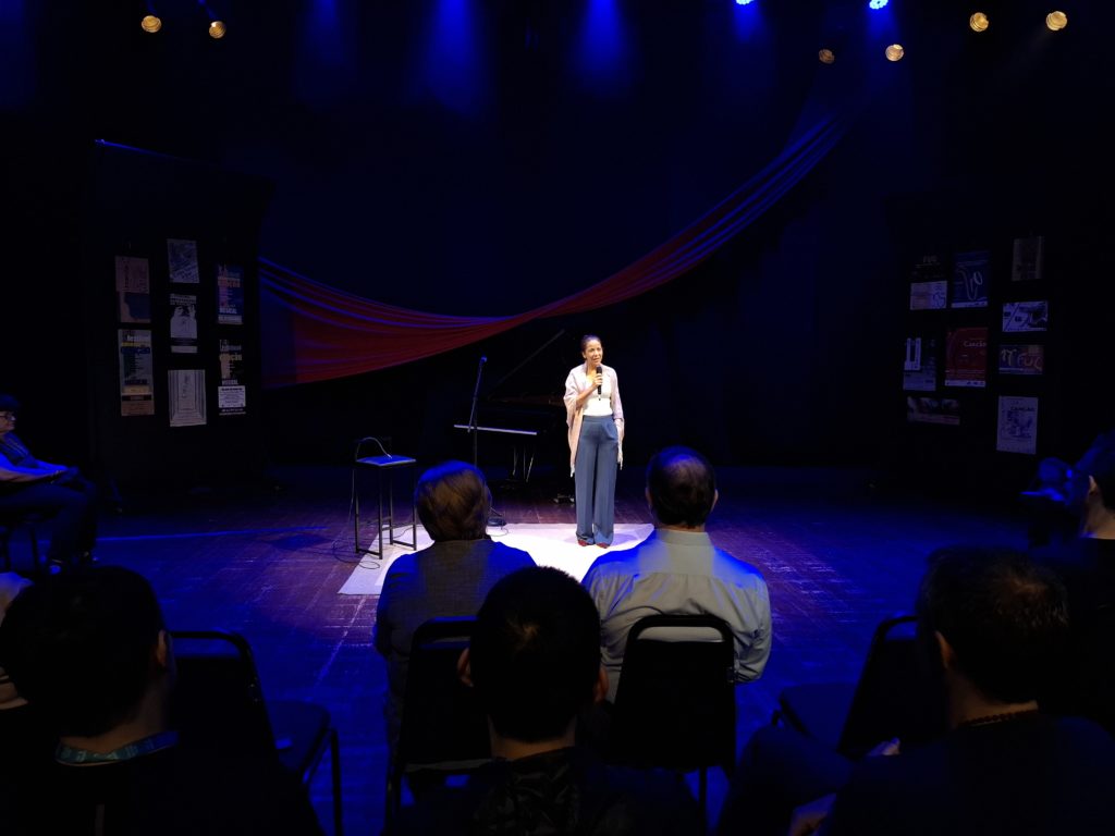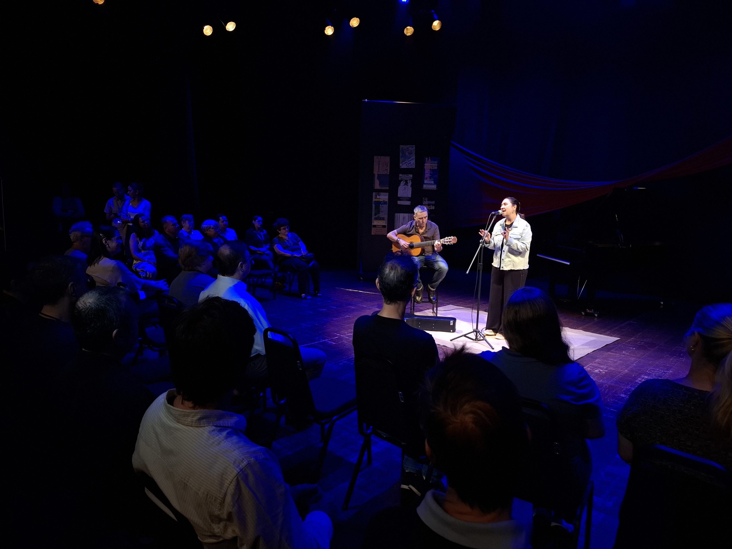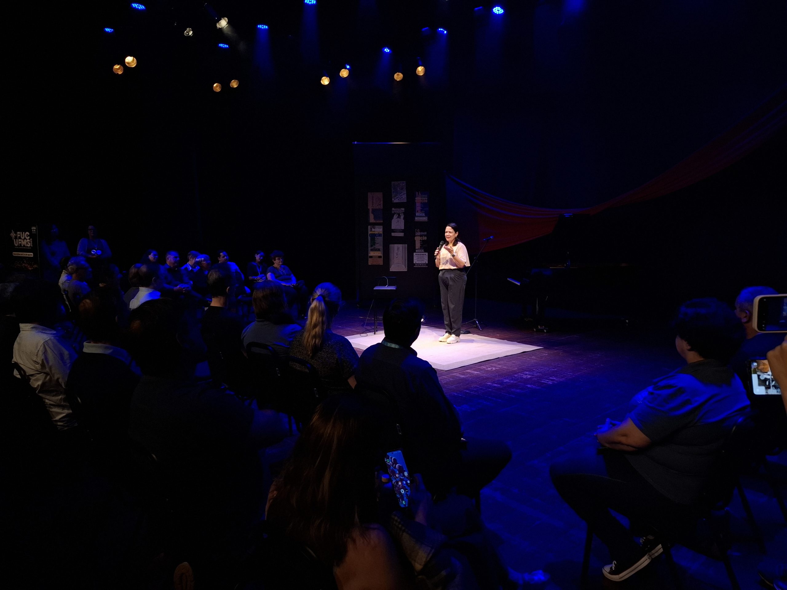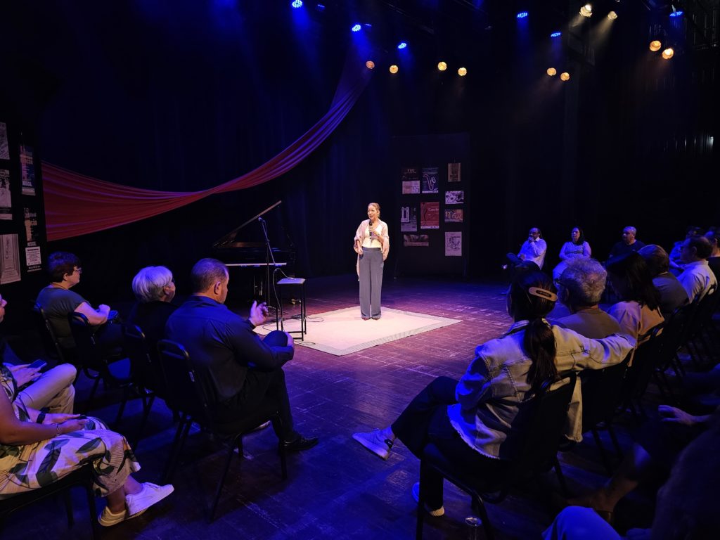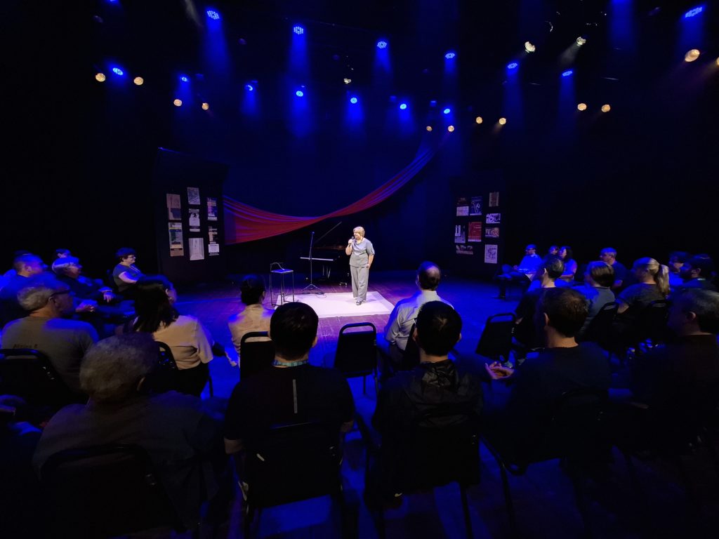 A diretora de Cultura, Arte e Popularização da Ciência da Proece, Rozana Valentim, falou sobre o motivo do convite a todos os participantes da cerimônia a estarem no palco do teatro. “Por que estamos no palco? Por que não estamos na plateia? Porque aqui é o lugar da arte. E nós também somos arte. Então, às vezes é importante vivenciar esse lugar. O lugar do outro. A arte tem essa função de colocar o outro nas diversidades todas. O Festival da Canção tem essa função de mostrar os outros a partir das músicas”, destacou. “Fazer um festival desde 1987 é acreditar na capacidade humana de dizer as coisas que a gente precisa dizer por meio da música. Sou das artes visuais, mas nada me toca mais do que a música. Sinto o privilégio imenso de estar neste lugar, ter esses conhecimentos todos e poder fomentar tudo isso junto à nossa reitora que acredita, é corajosa e sabe o papel da arte na vida de todo mundo, agradeço a todos aqui presentes e a cada um que apoia esta iniciativa”, falou.