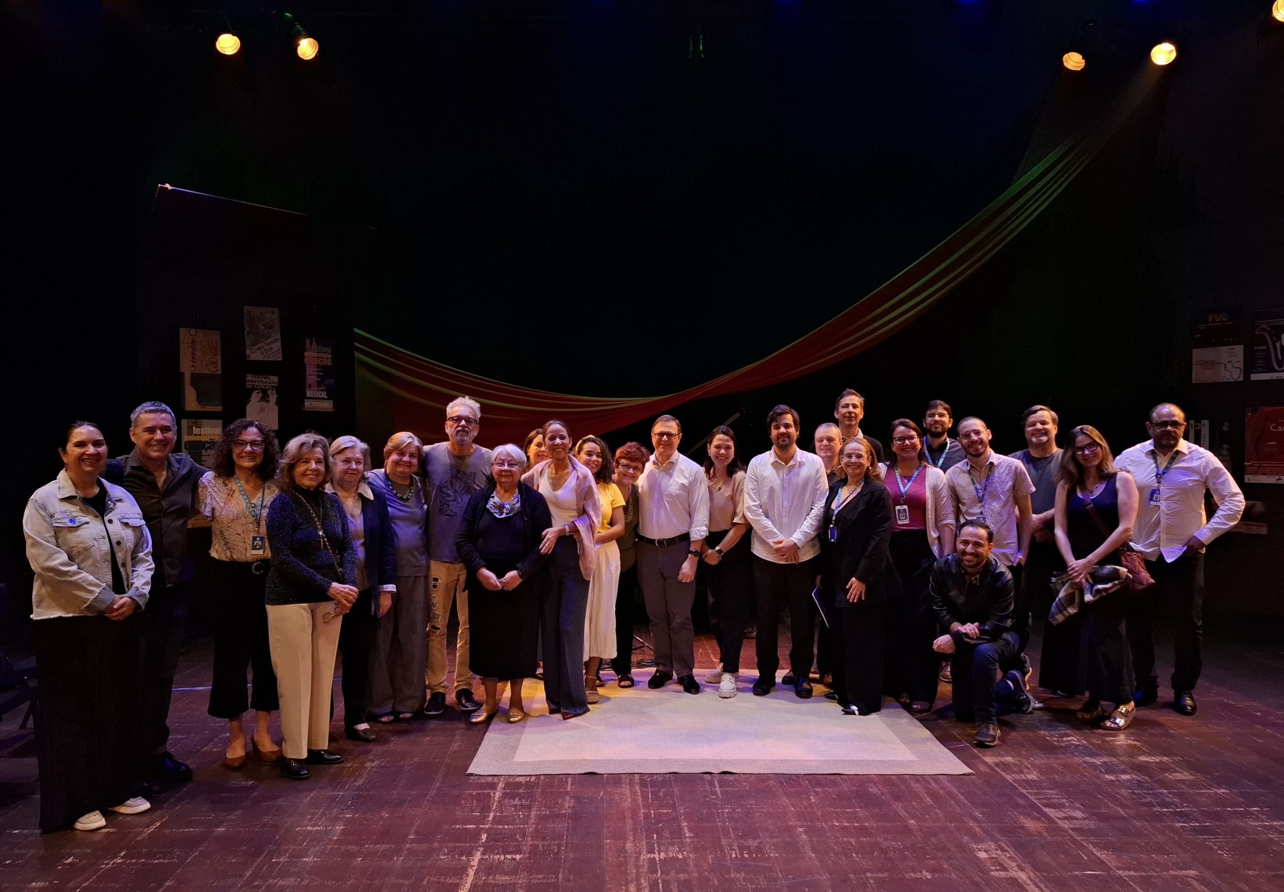 A cerimônia de lançamento do Festival Universitário da Canção (FUC) UFMS 2025 foi realizada na manhã desta terça-feira, 22, no Teatro Glauce Rocha. Além dos parceiros da Universidade nesta realização, a solenidade teve a participação de representantes da cena cultural de Mato Grosso do Sul e de pró-reitores, diretores, coordenadores de curso e servidores.