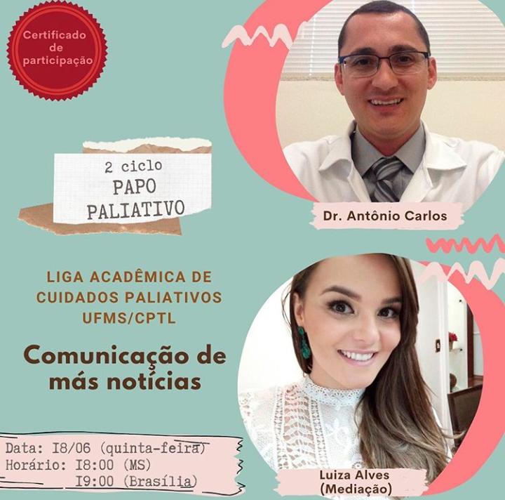A Liga Acadêmica de Cuidados Paliativos do Campus de Três Lagoas (CPTL) está realizando o projeto “Papo paliativo: cuidados paliativos em meio a pandemia de Covid-19”, que conta com transmissões ao vivo sobre o tema.