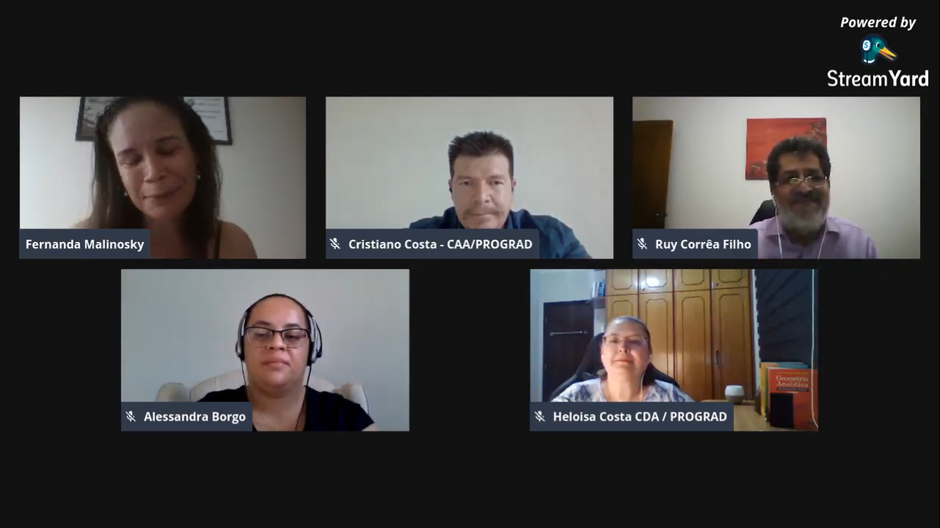 Foi realizada na tarde de hoje (19) a primeira live do quinto Curso de Coordenadores de Cursos de Graduação da UFMS, promovido em conjunto pelas pró-reitorias de Extensão, Cultura e Esporte (Proece), de Graduação (Prograd) e de Gestão de Pessoas (Progep).