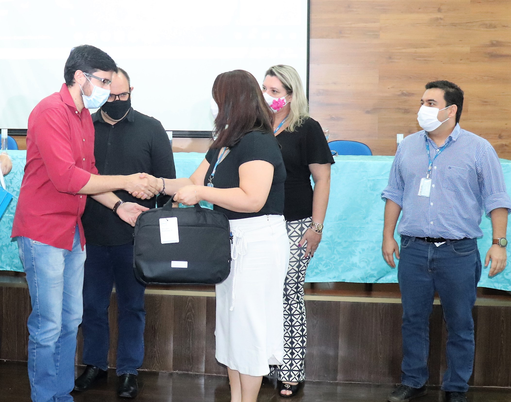 Nesta quarta-feira, 3, foram entregues novos notebooks e acessórios para sete professores e dez técnicos da Cidade Universitária e dos câmpus de Coxim, Chapadão do Sul e Nova Andradina. A cerimônia foi realizada no auditório do Complexo EAD e Escola de Extensão e contou com a presença do reitor Marcelo Turine e da vice-reitora Camila Ítavo, além de pró-reitores, diretores de unidades e servidores.