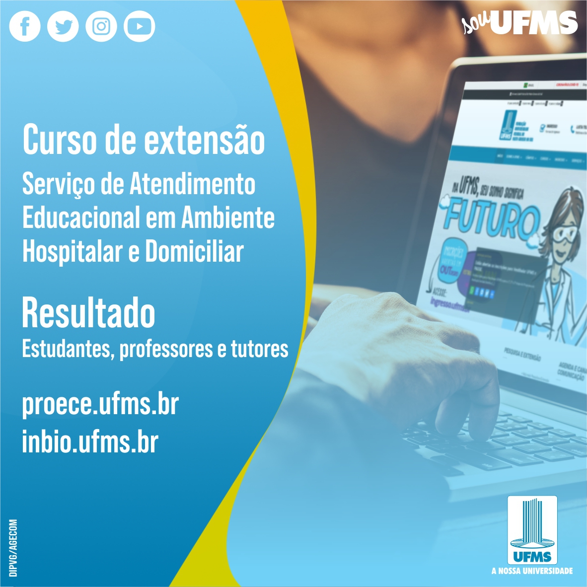 O curso de extensão Serviço de Atendimento Educacional em Ambiente Hospitalar e Domiciliar, oferecido pelo Instituto de Biociências (Inbio) da UFMS em parceria com o Ministério da Educação, recebeu pedidos de inscrição de professores da rede pública de várias regiões do Brasil.