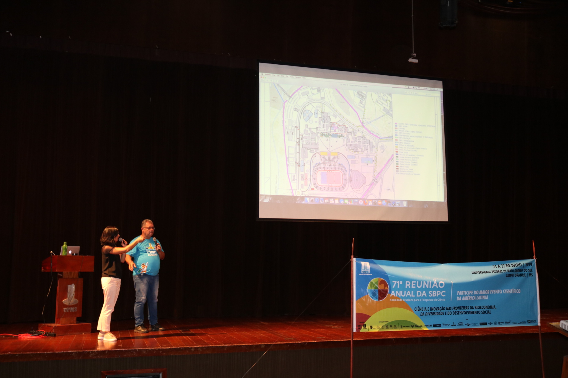 É a primeira vez que o estado de Mato Grosso do Sul sediará a SBPC, em 70 anos de existência. “É muita felicidade participar de um evento tão grande que acontece pela primeira vez aqui, porque essa cidade me adotou quando vim para fazer a faculdade. É um evento tão grande e você é parte fundamental ali no meio, você está com muitas pessoas ajudando a construir algo que é muito grande e muito importante, então é muita felicidade”, declara a acadêmica de Medicina Veterinária da UFMS Angélica Leite.