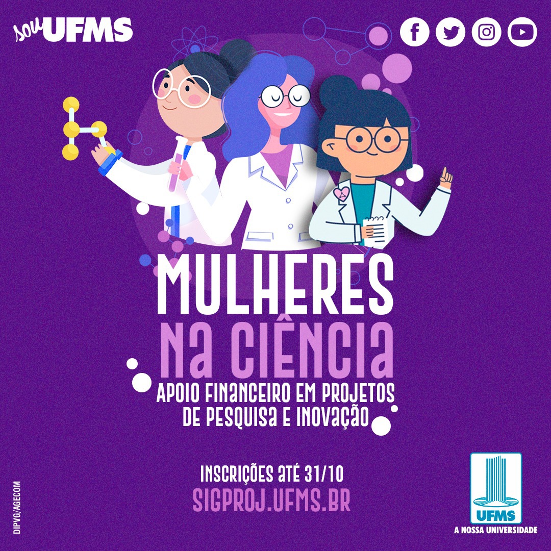 Até o dia 31 de outubro, é possível submeter propostas para o edital Mulheres na Ciência UFMS 2020. As submissões devem ser feitas on-line por meio do site Sigproj. Entre os itens financiáveis estão despesas com serviços de tradução, revisão e publicação de artigos científicos em periódicos e inscrição em eventos para apresentação de trabalhos. Do montante de recursos, 60% é reservado para apoio a pesquisadoras que não atuam nas categorias permanente ou colaboradora em Programas de Pós-graduação (PPGs) da UFMS. O valor máximo para cada proposta será de R$ 5.000 reais.